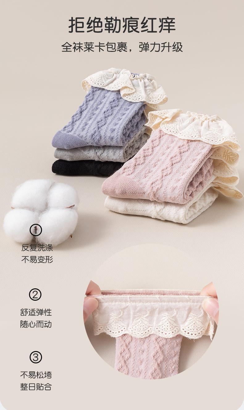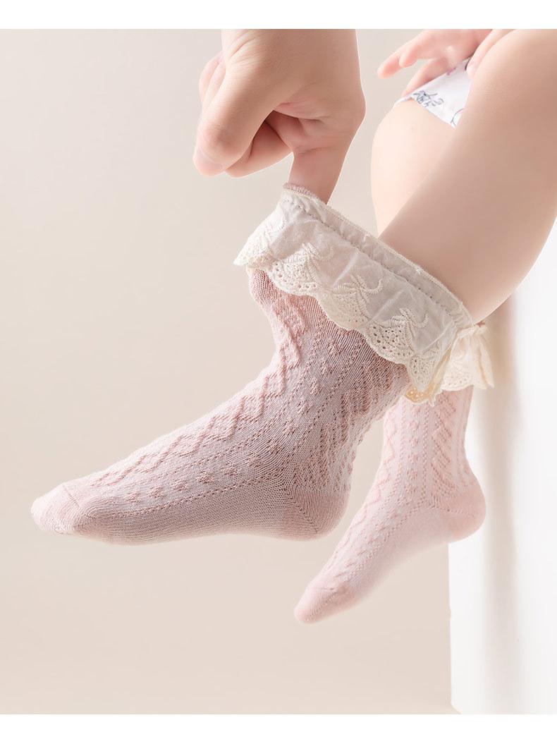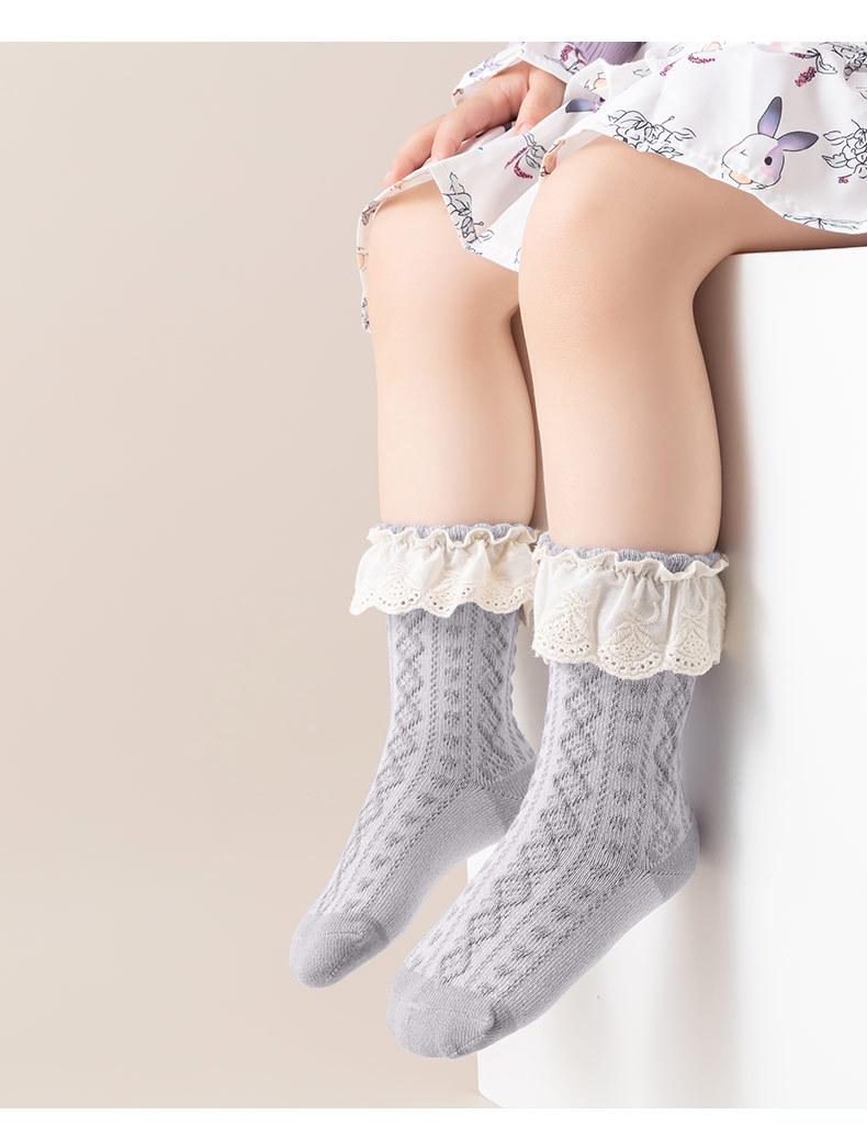 Meias Novas para Bebê Menina Primavera e Outono Meias de Renda para Bebê Meias Princesa Recém-Nascido Cano Médio Meias Infantis