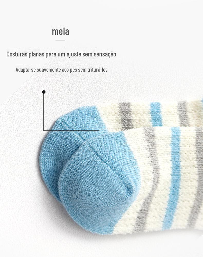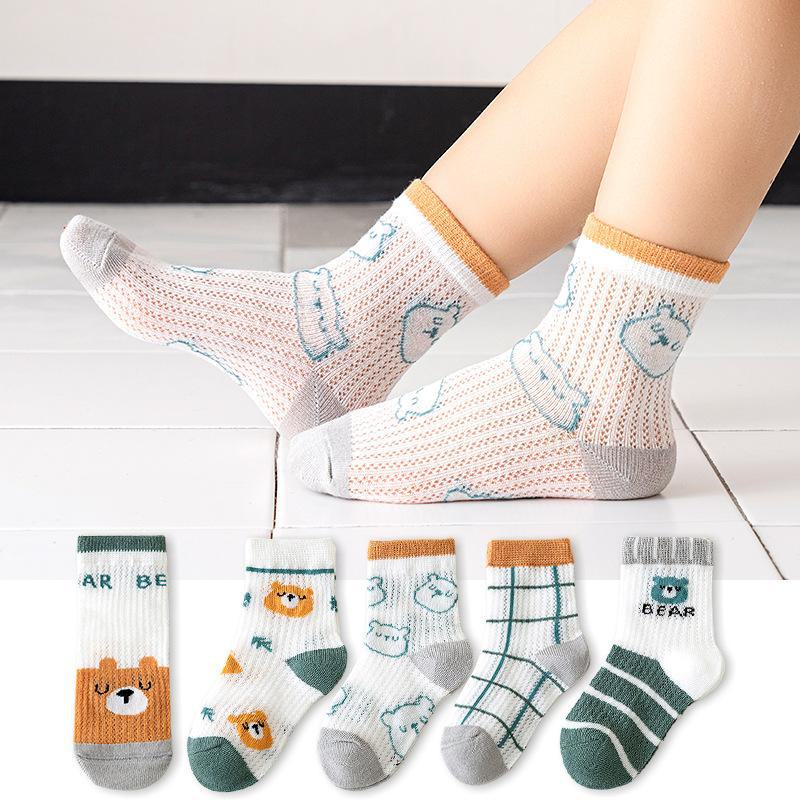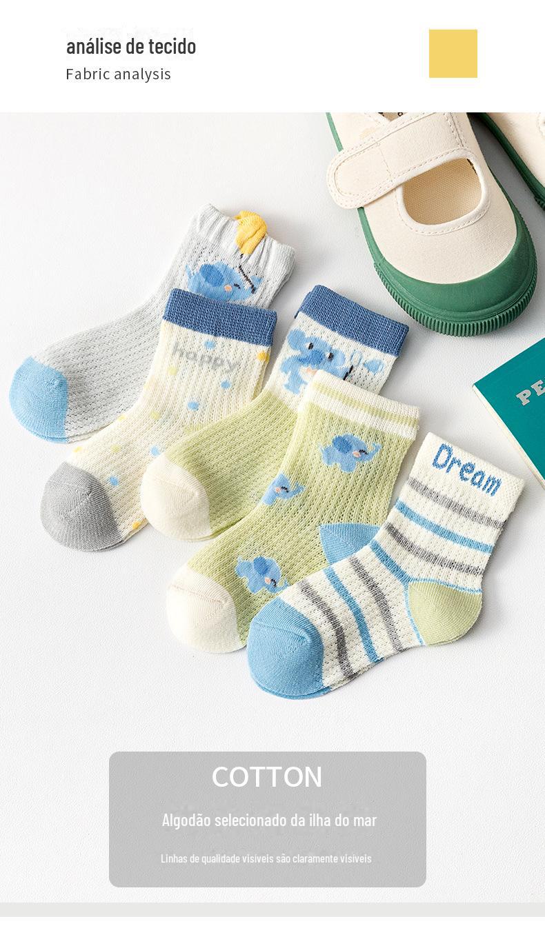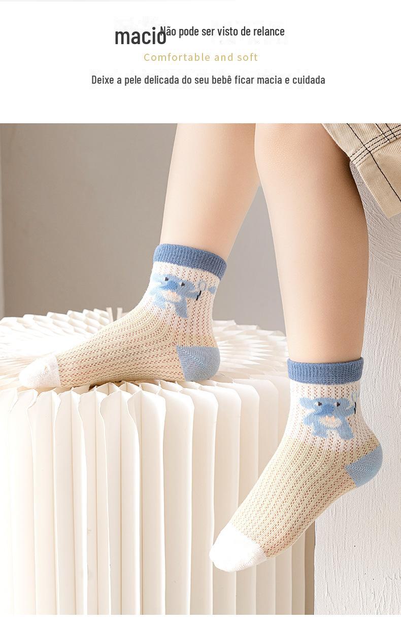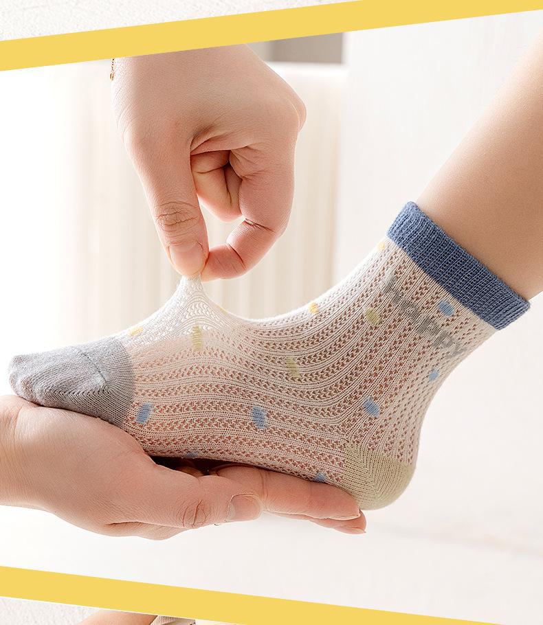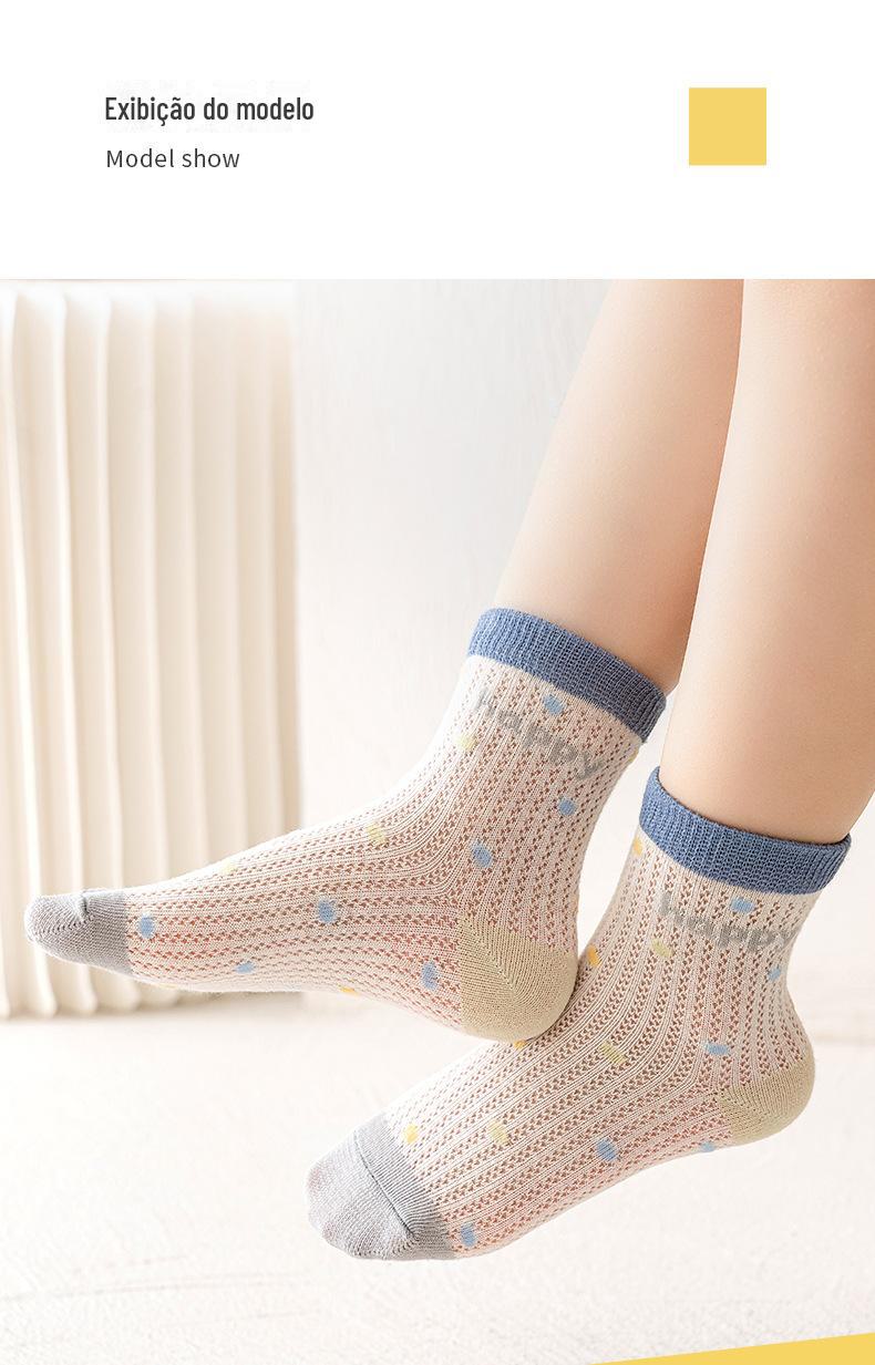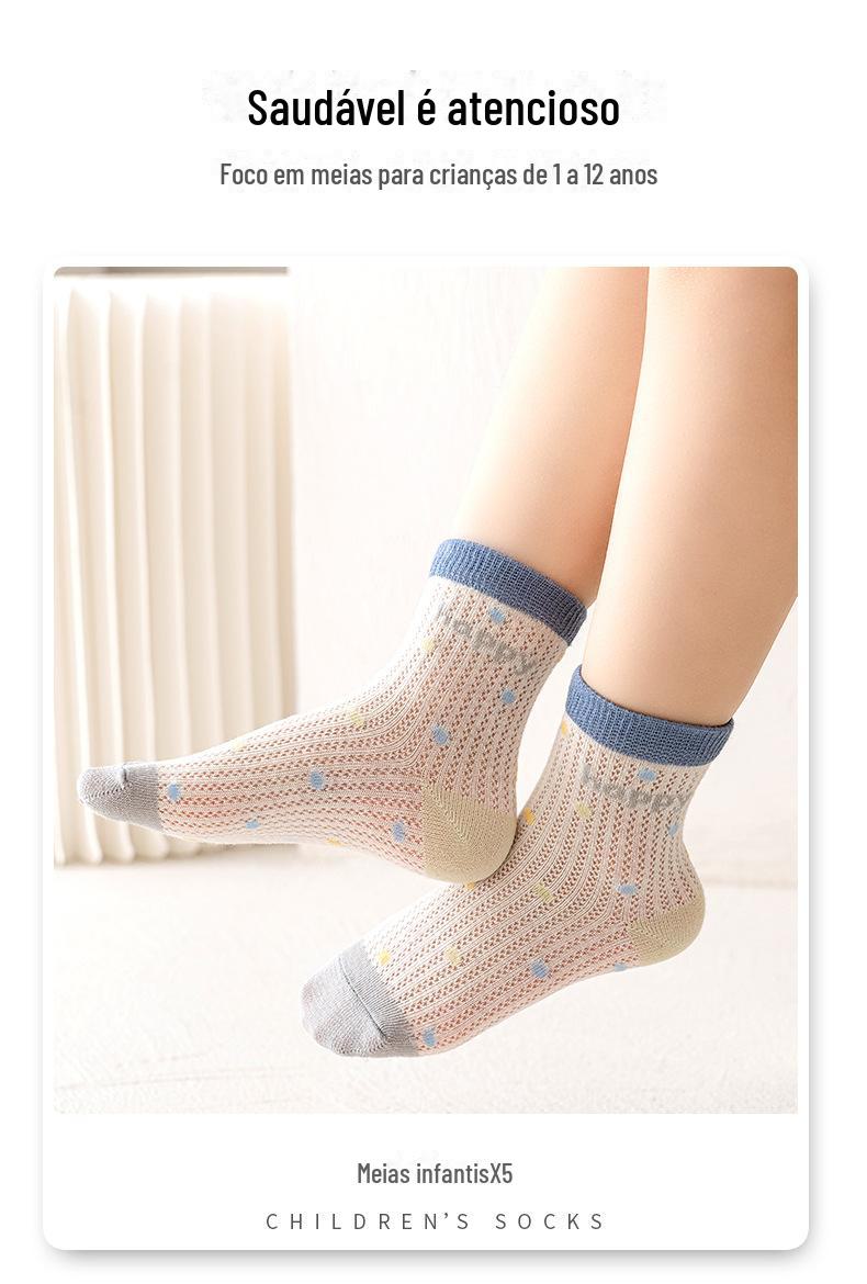Meias de Cano Médio para Crianças Primavera e Verão Finas de Algodão Puro Respirável com Malha Meninos e Meninas Bebê Desodorante Absorvente de Suor Meias de Algodão Atacado