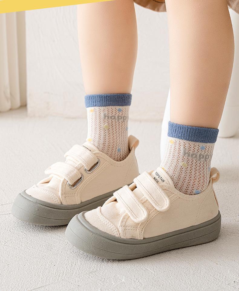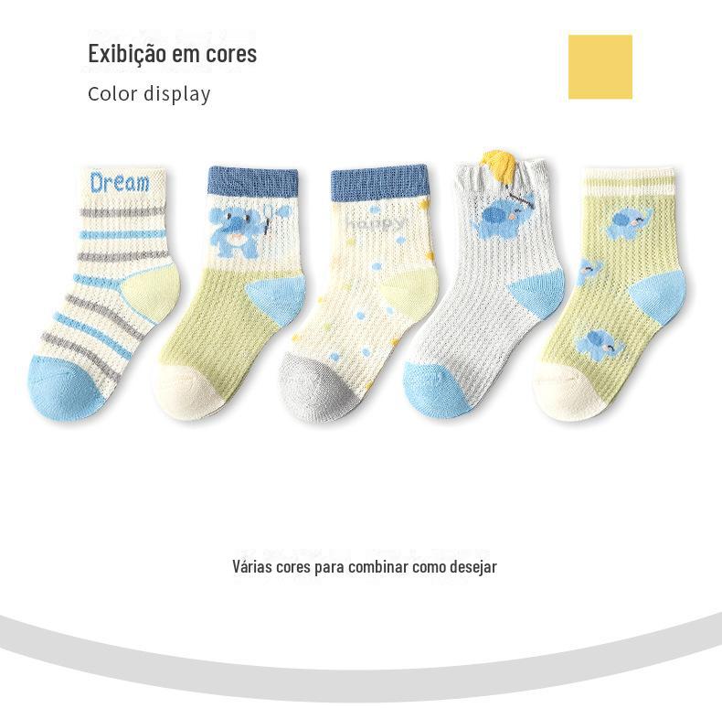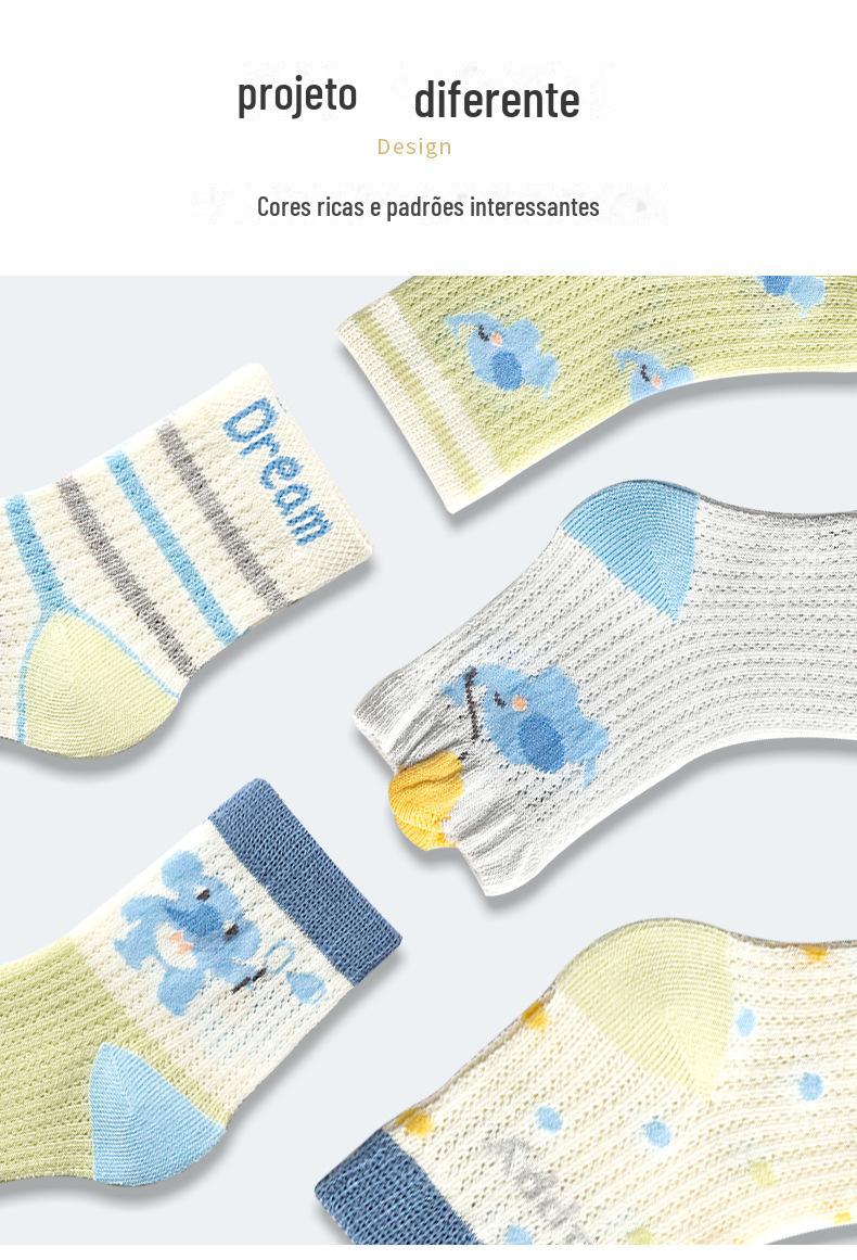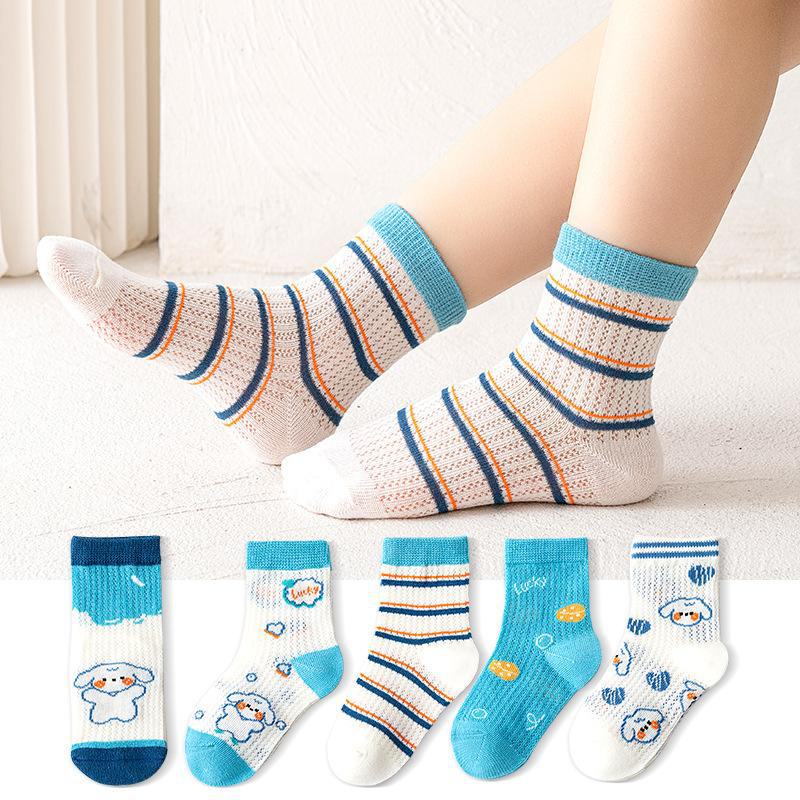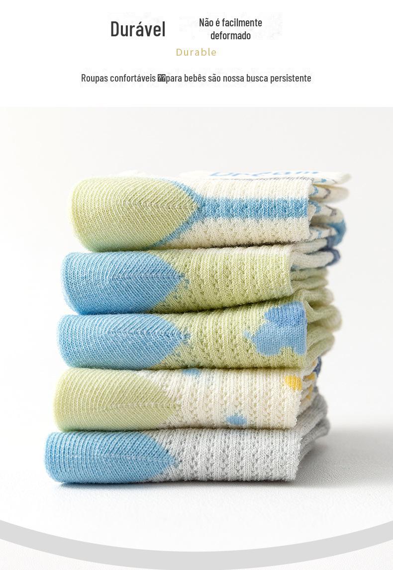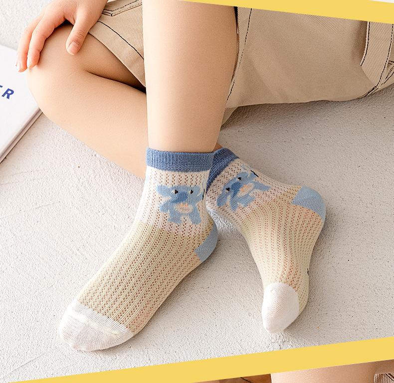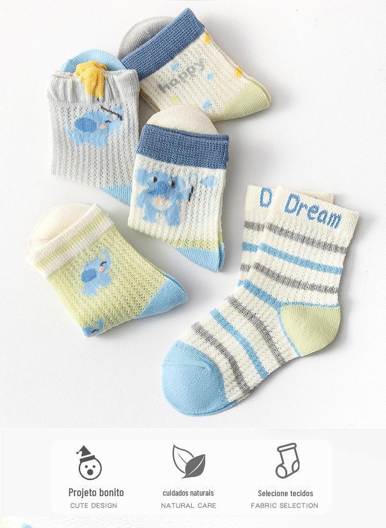 Meias de Cano Médio para Crianças Primavera e Verão Finas de Algodão Puro Respirável com Malha Meninos e Meninas Bebê Desodorante Absorvente de Suor Meias de Algodão Atacado