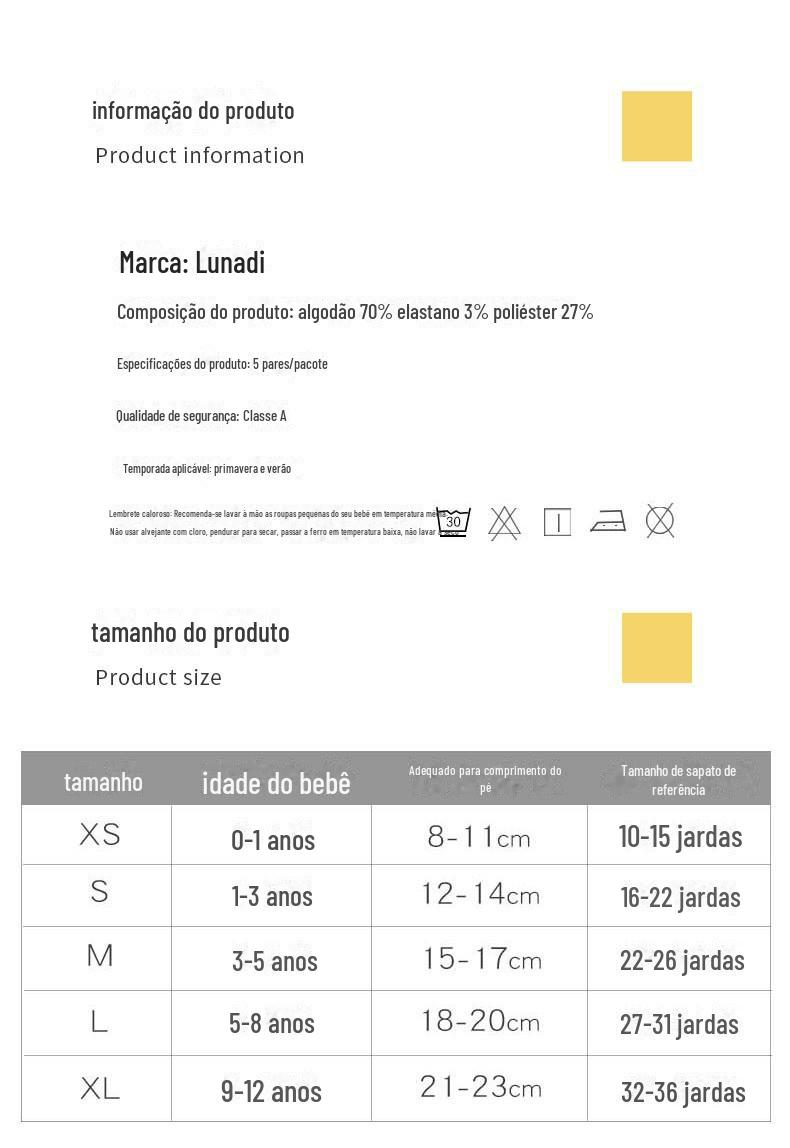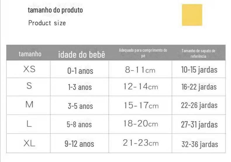 Tamanho das meias infantis