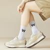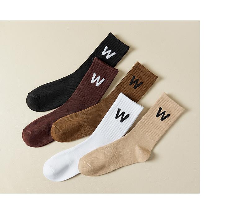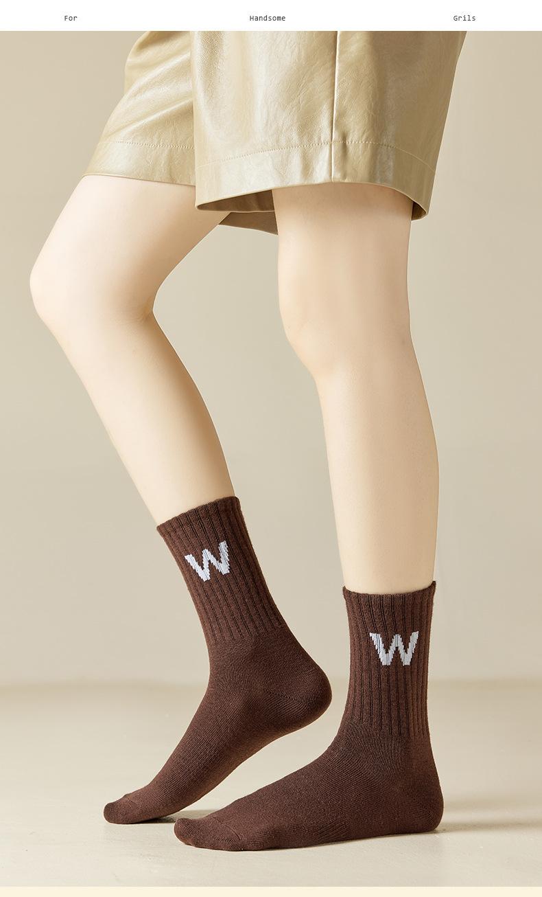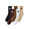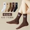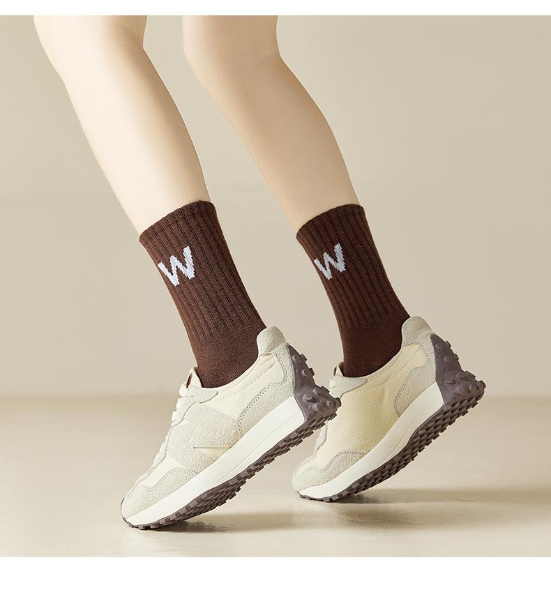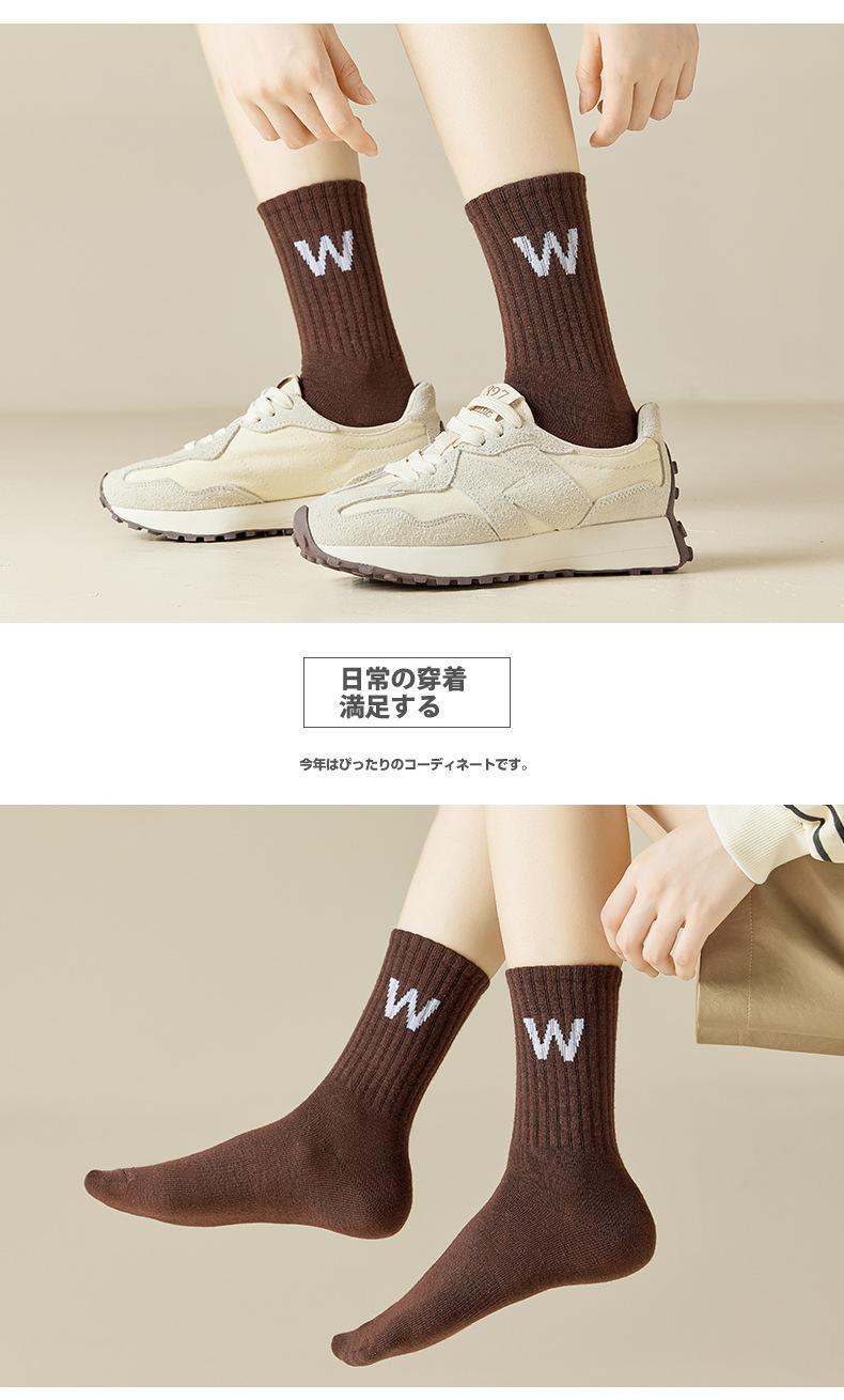 Meias femininas de outono e inverno, meias de comprimento médio, estilo marrom moderno, cor sólida, meias simples, estilo japonês, meias femininas felpudas, todas combinando