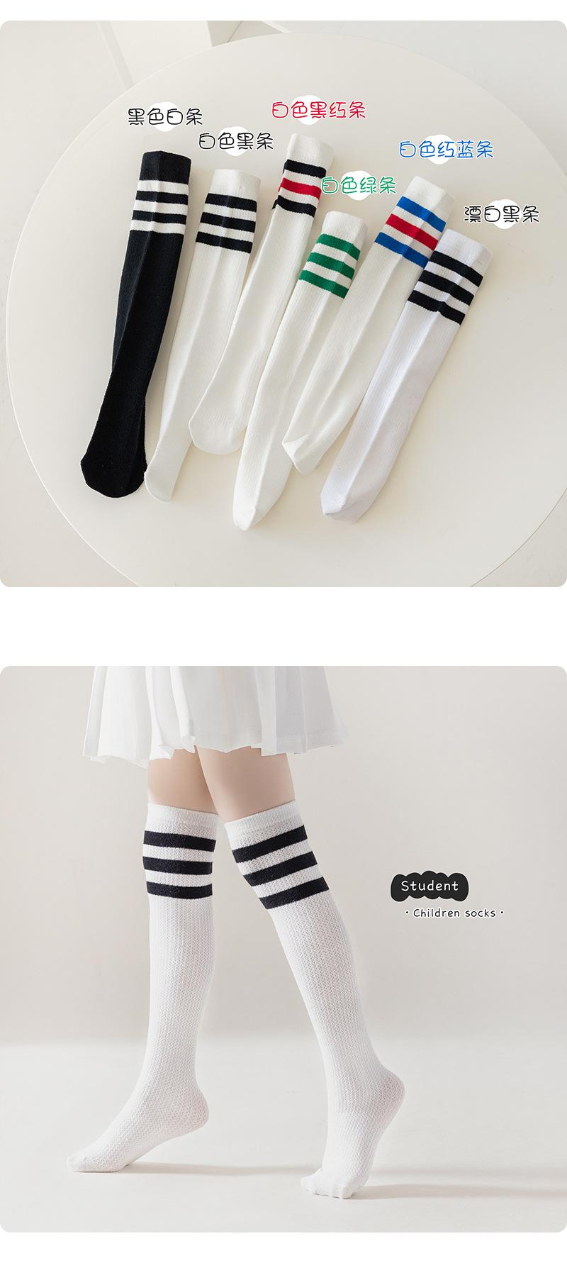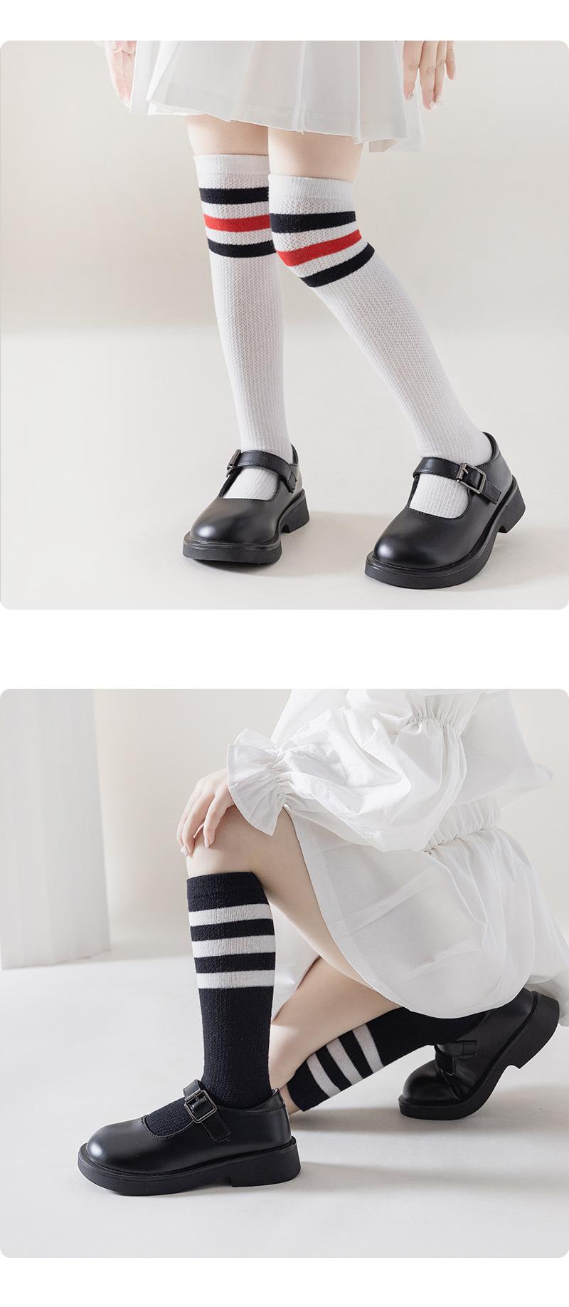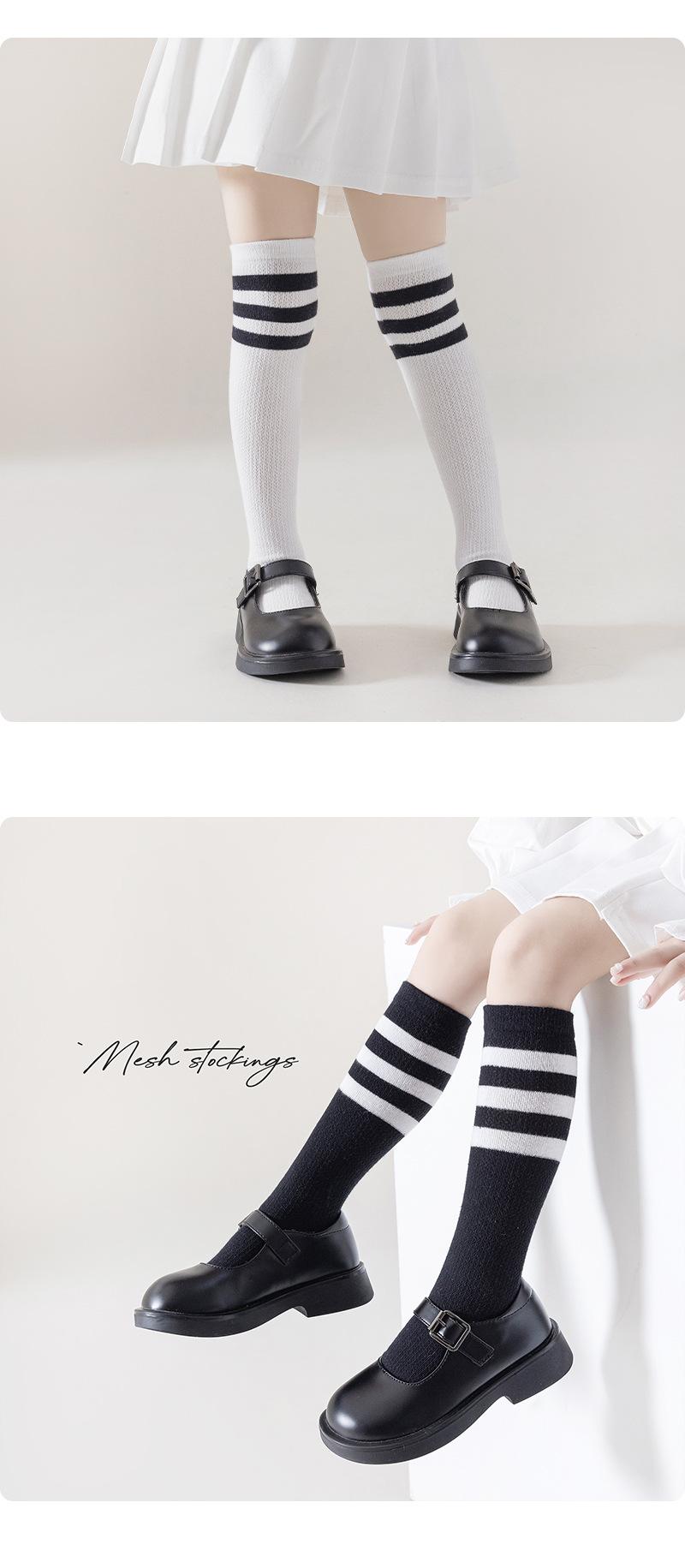Meias infantis listradas de primavera e verão malha de algodão respirável estudantes meias altas joelho branco coxa meias finas