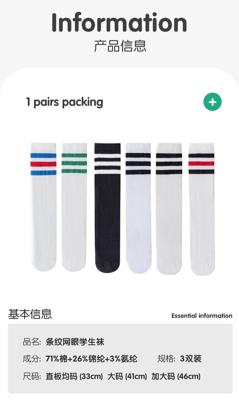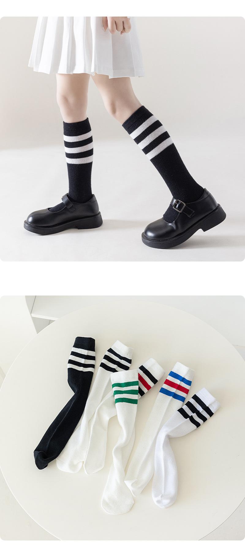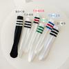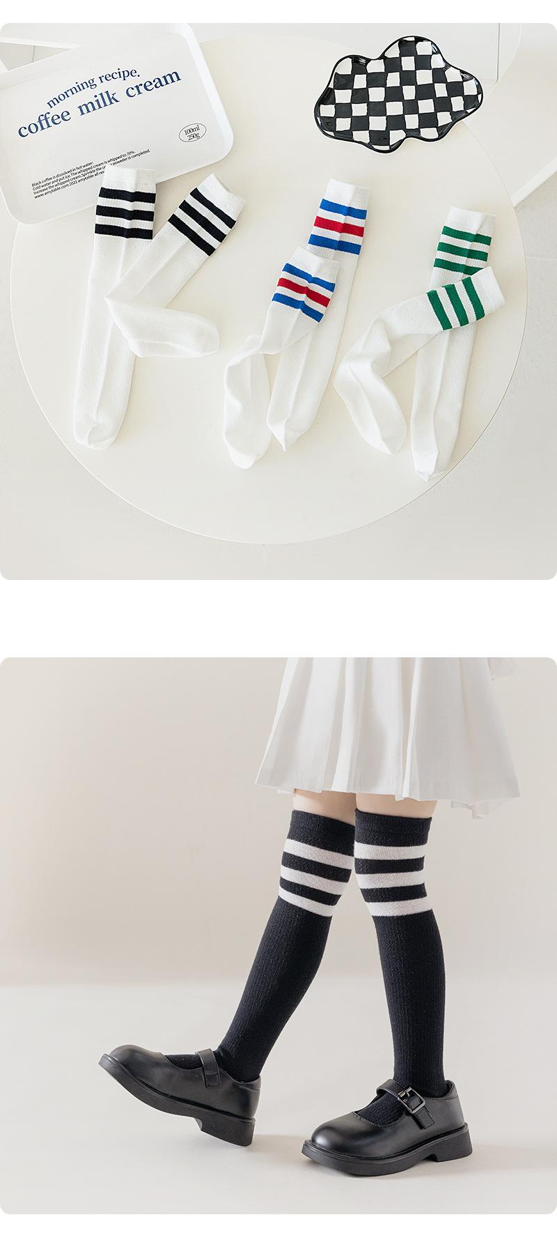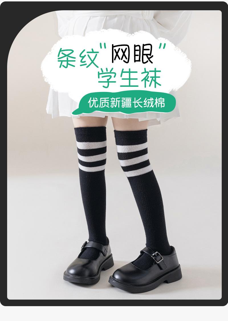 Meias infantis listradas de primavera e verão malha de algodão respirável estudantes meias altas joelho branco coxa meias finas