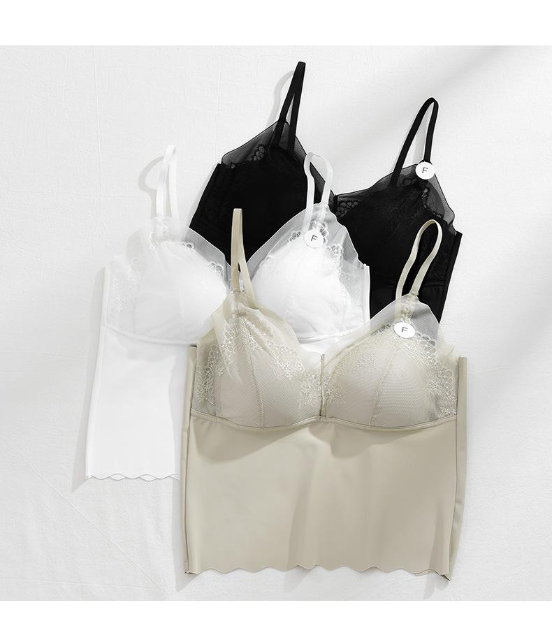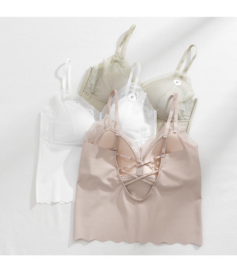 Primavera Nova Roupa Interior De Seda De Gelo Sutiã Sem Costura Das Mulheres Sem Anel De Aço Estilingue Cinto Peito Almofada De Peito Cruz Colete Base Beleza De Volta Embrulhando Peito