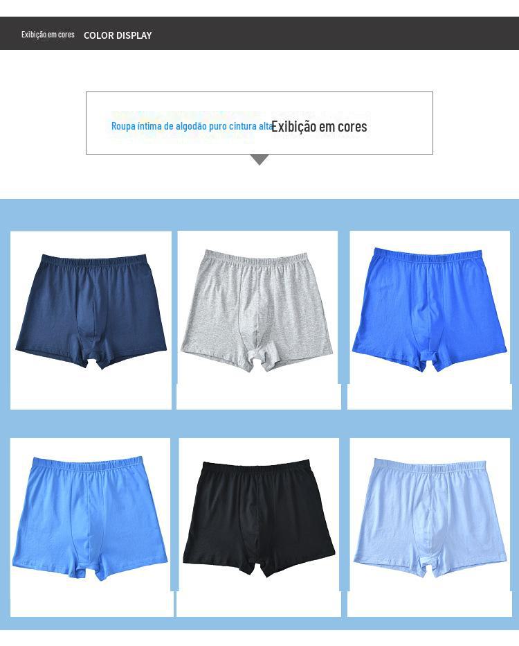 Atacado de Roupa Íntima de Cintura Alta para Idosos Cuecas Boxer de Algodão Masculinas de Cor Sólida Cuecas Boxer de Algodão Masculinas Tamanho Grande Soltas
