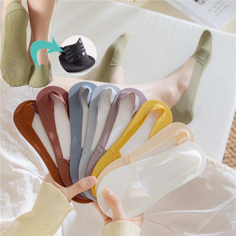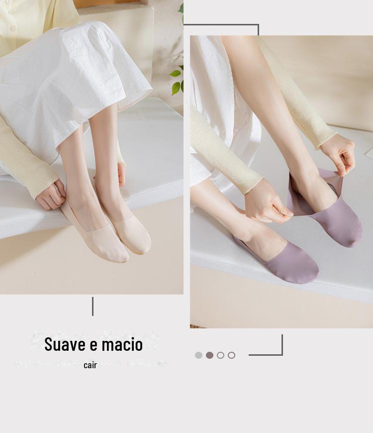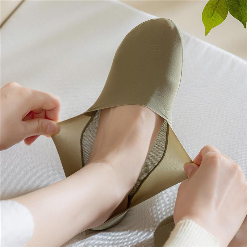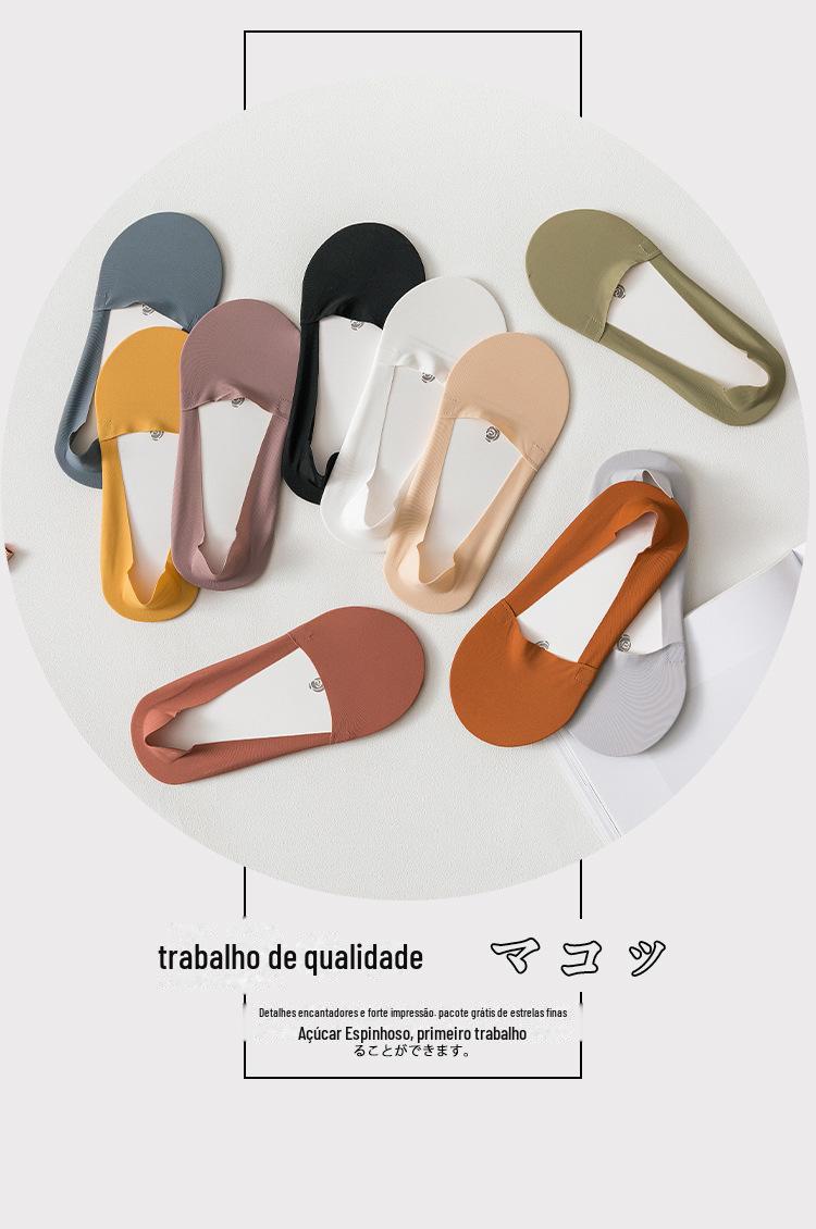 5 pares de meias de barco meias femininas de verão com fundo de algodão fino meias femininas meias de barco de seda de gelo meias invisíveis de corte baixo salto antiderrapante antiderrapante