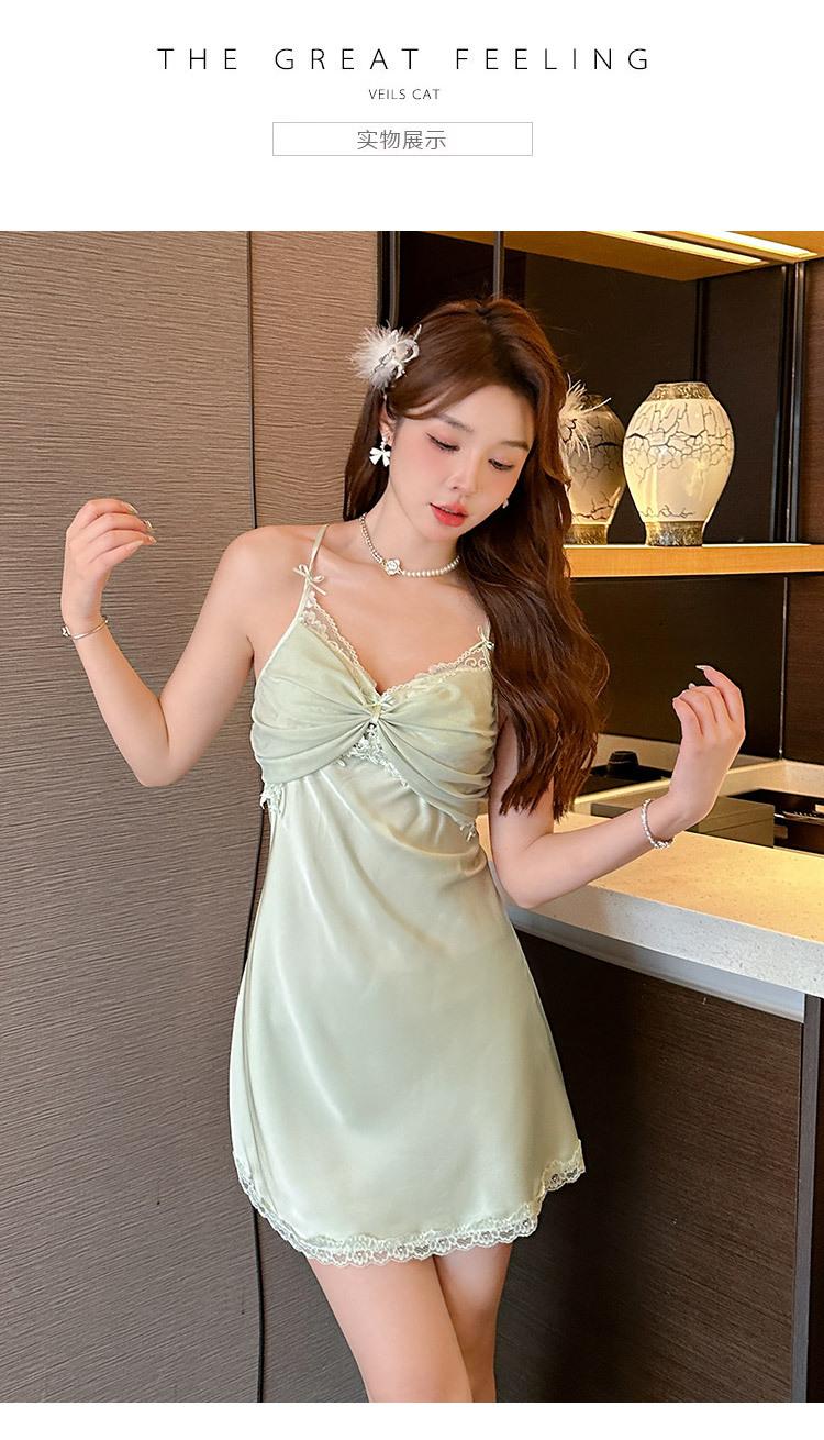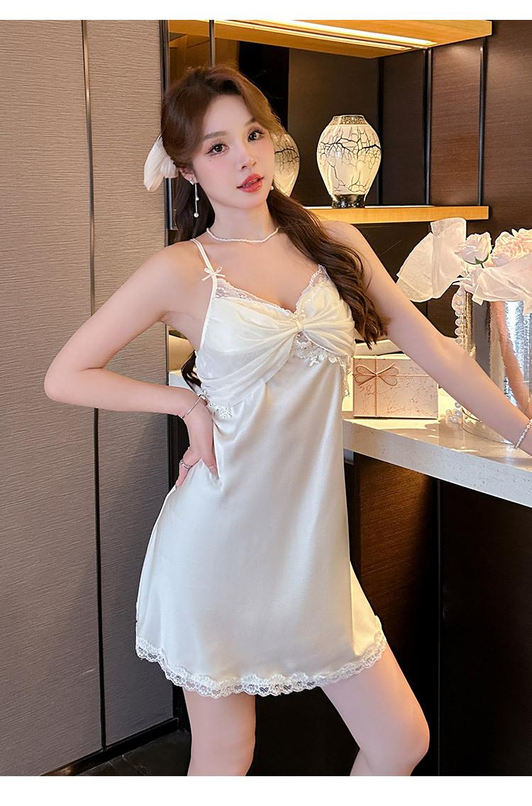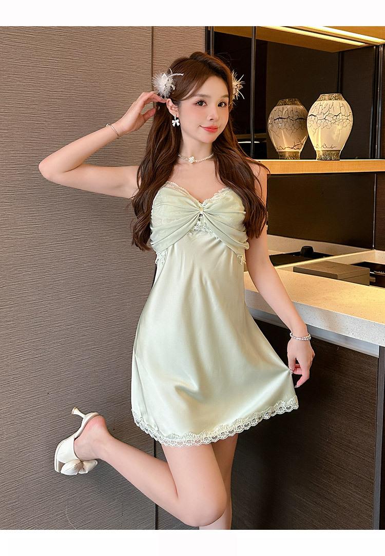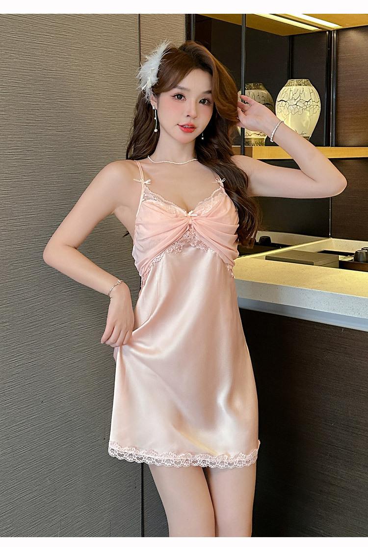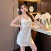 Pijamas mulheres primavera e verão gelo seda fina sling sexy com peito almofada cor sólida renda backless home wear puro desejo tentação nightdress