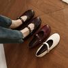 Sapatos Beanie de Bico Redondo com Sola Reta para Mulheres 2024 Novo Estilo Preguiçoso de Um Pé Confortáveis Sapatos de Vovó com Sola Macia Sapatos Casuais de Boca Rasa