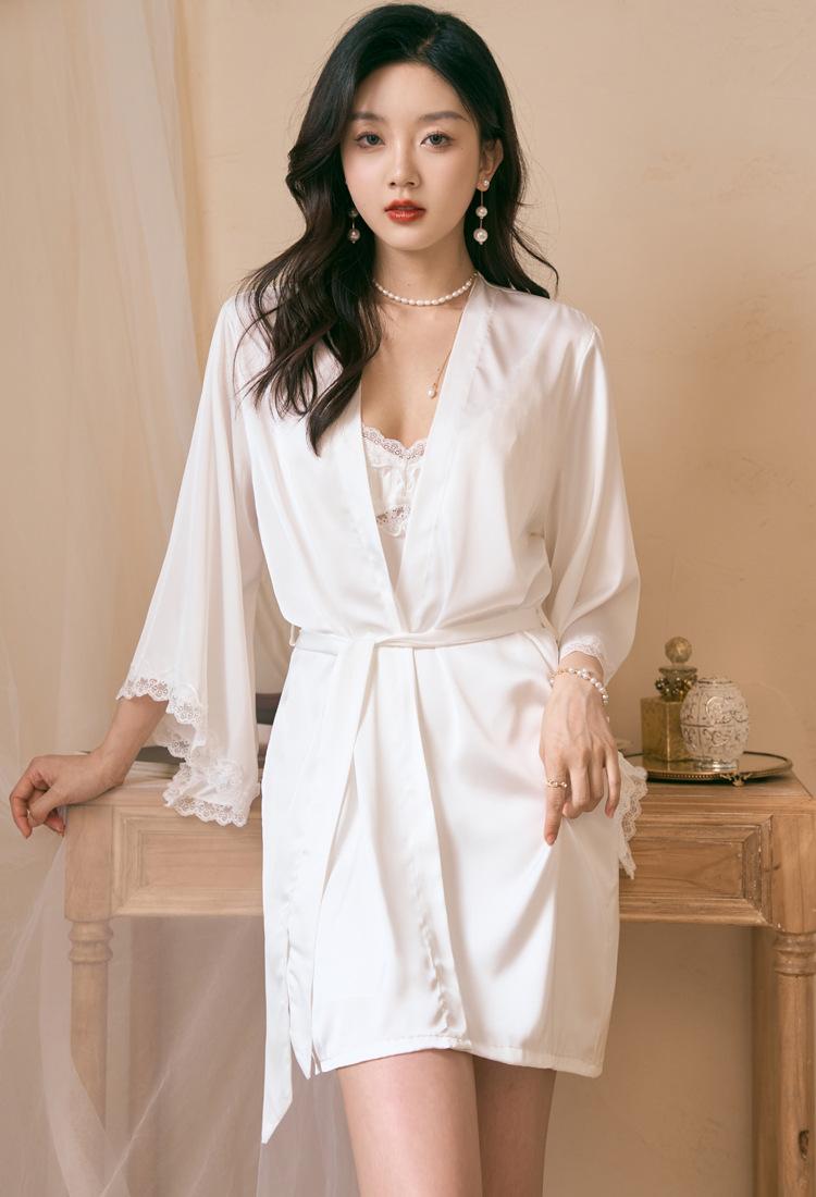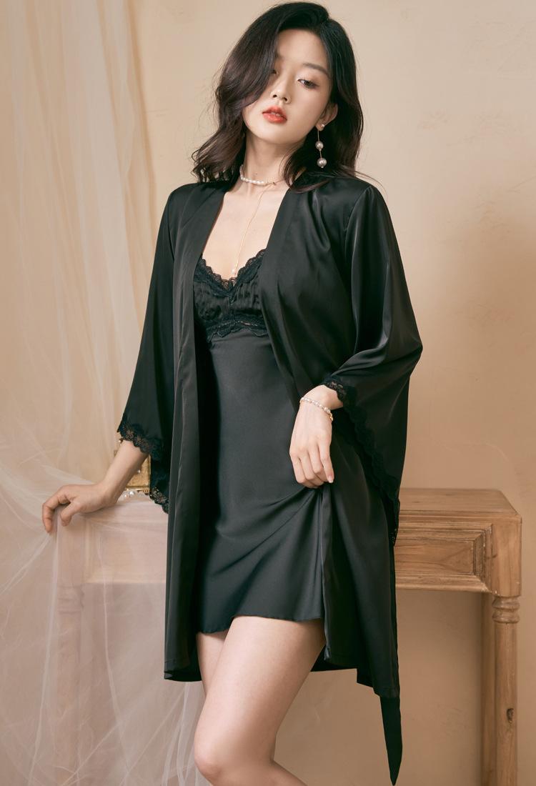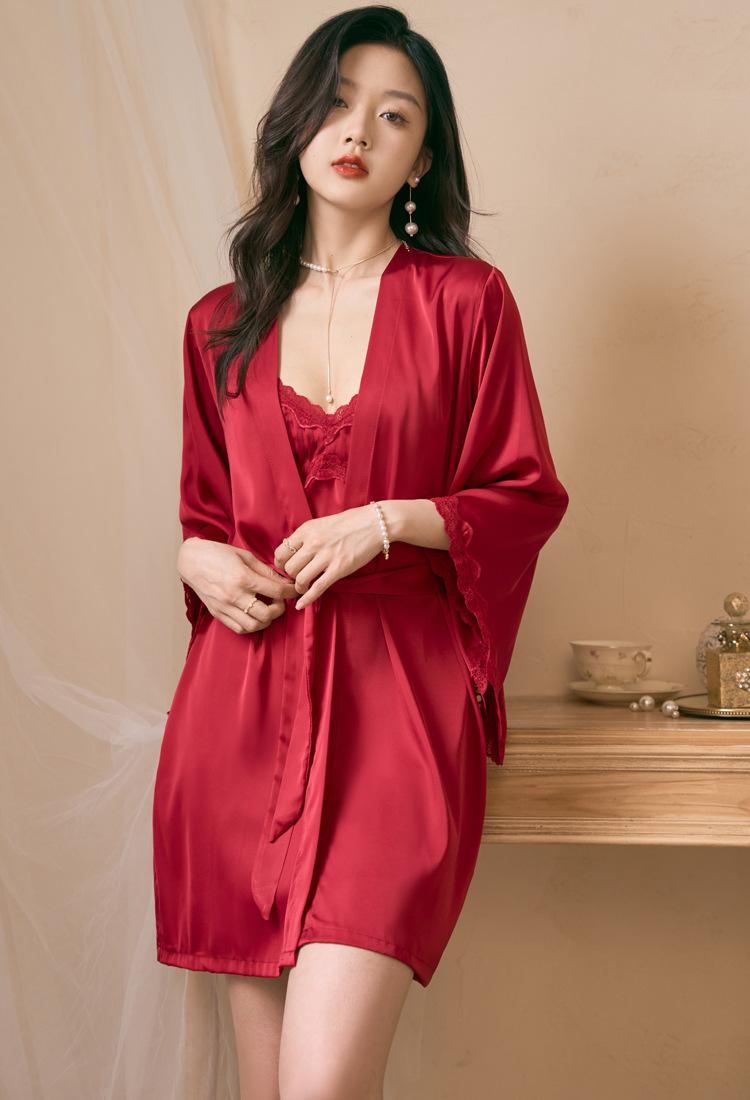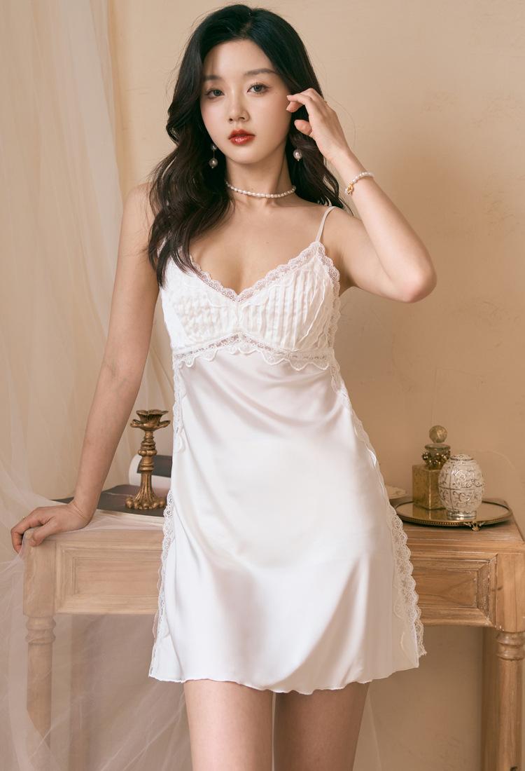 Pijama feminino fino e sexy para verão, camisola de duas peças, seda gelada de alto nível, roupa de casa, estilo Pure Desire, camisola