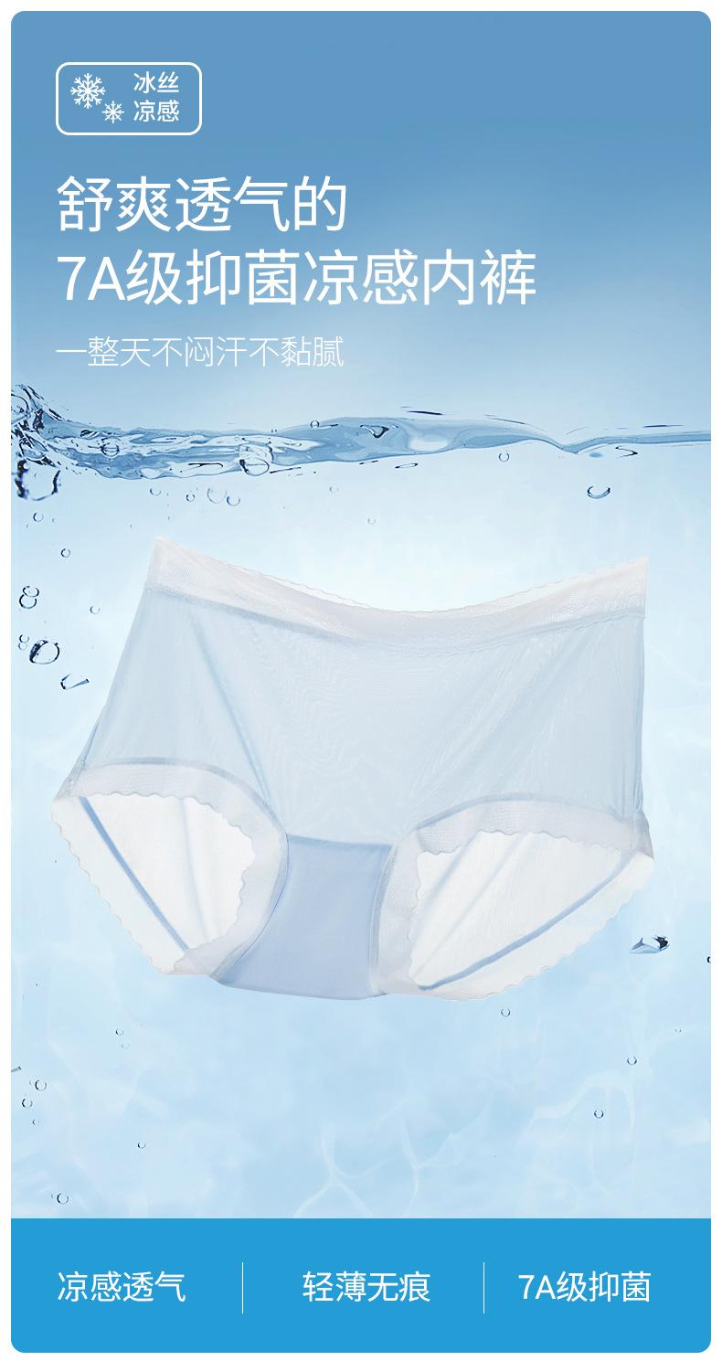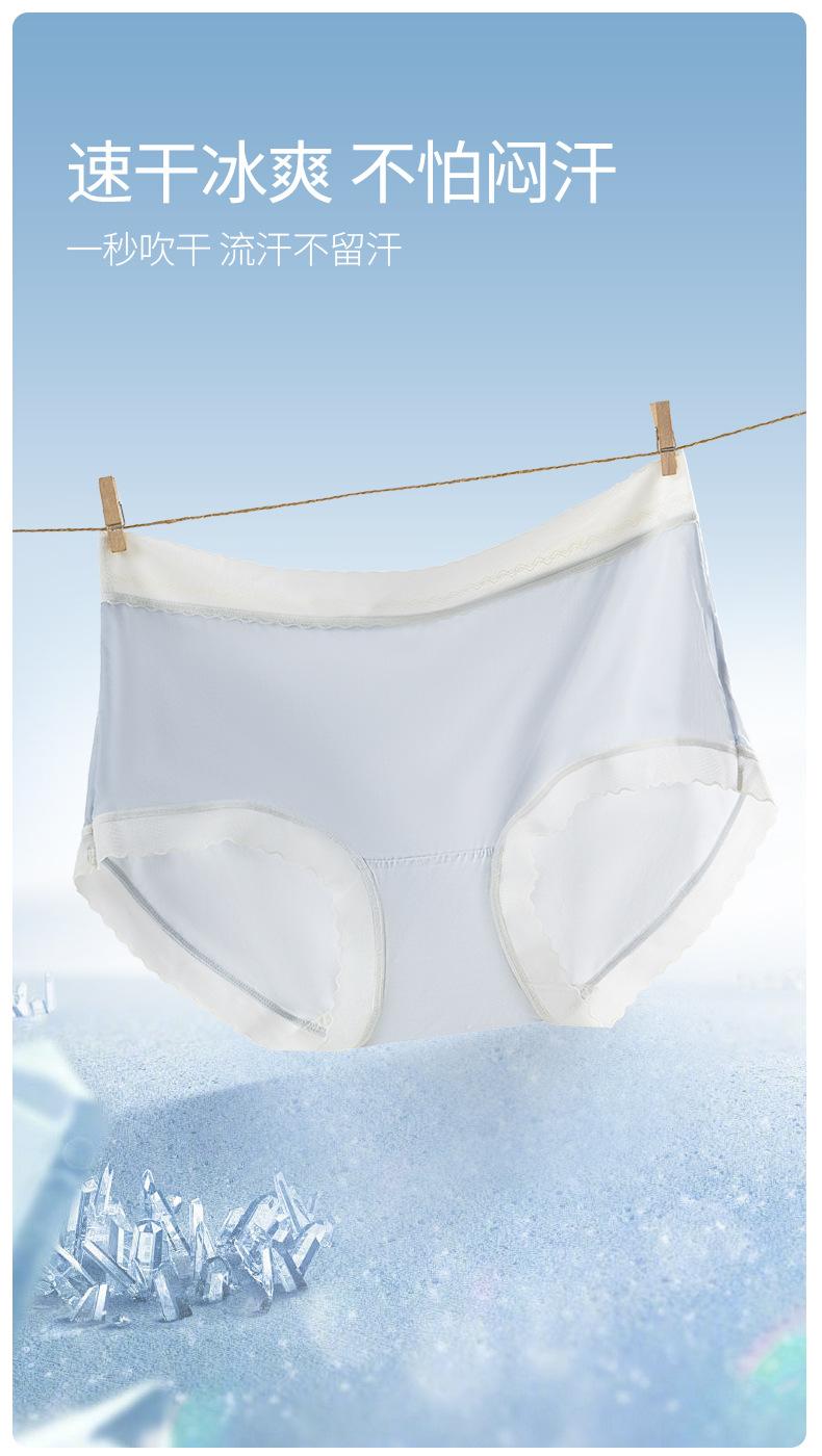 Roupa Íntima de Seda Gelo para Meninas, Cor Sólida, Respirável, Antibacteriana, Renda de Cintura Média, Roupa Íntima Feminina Sem Costura, Cuecas Respiráveis para Mulheres