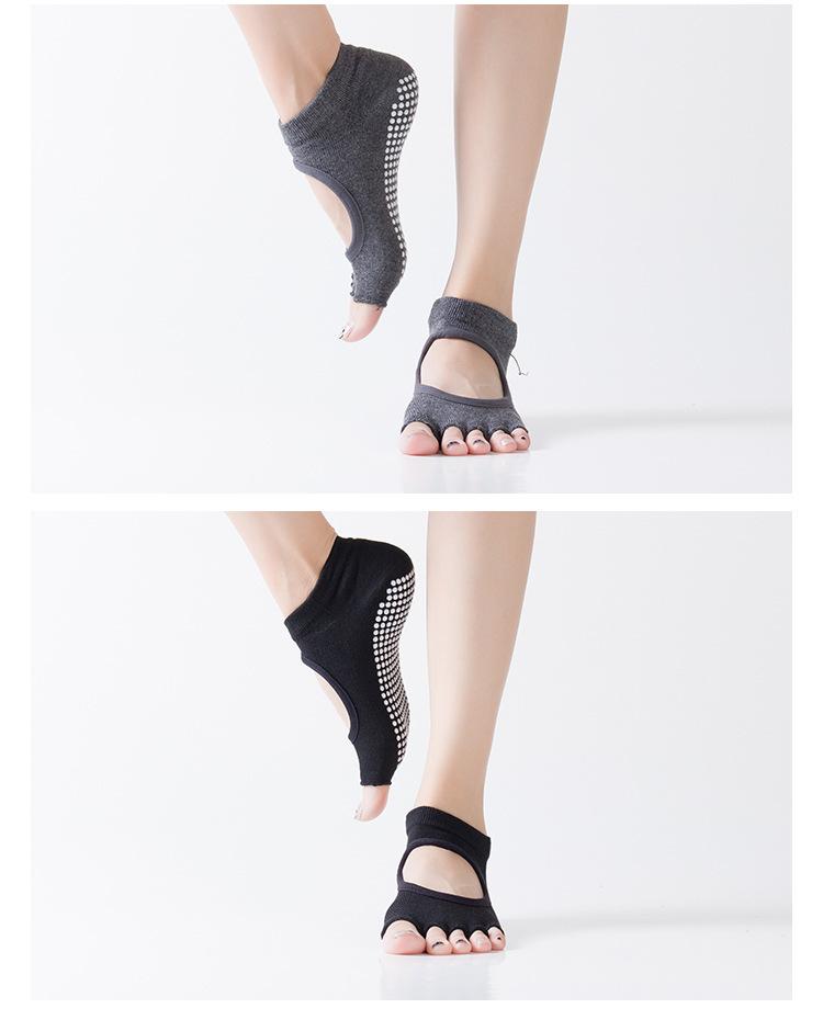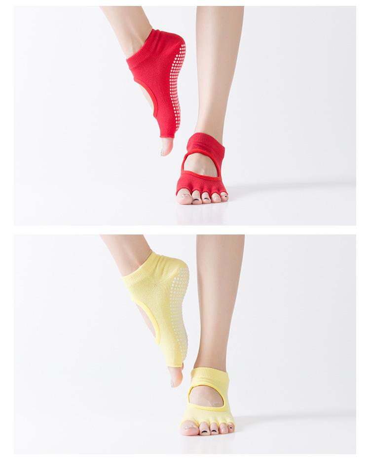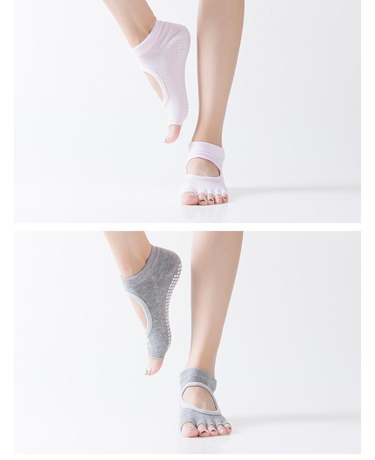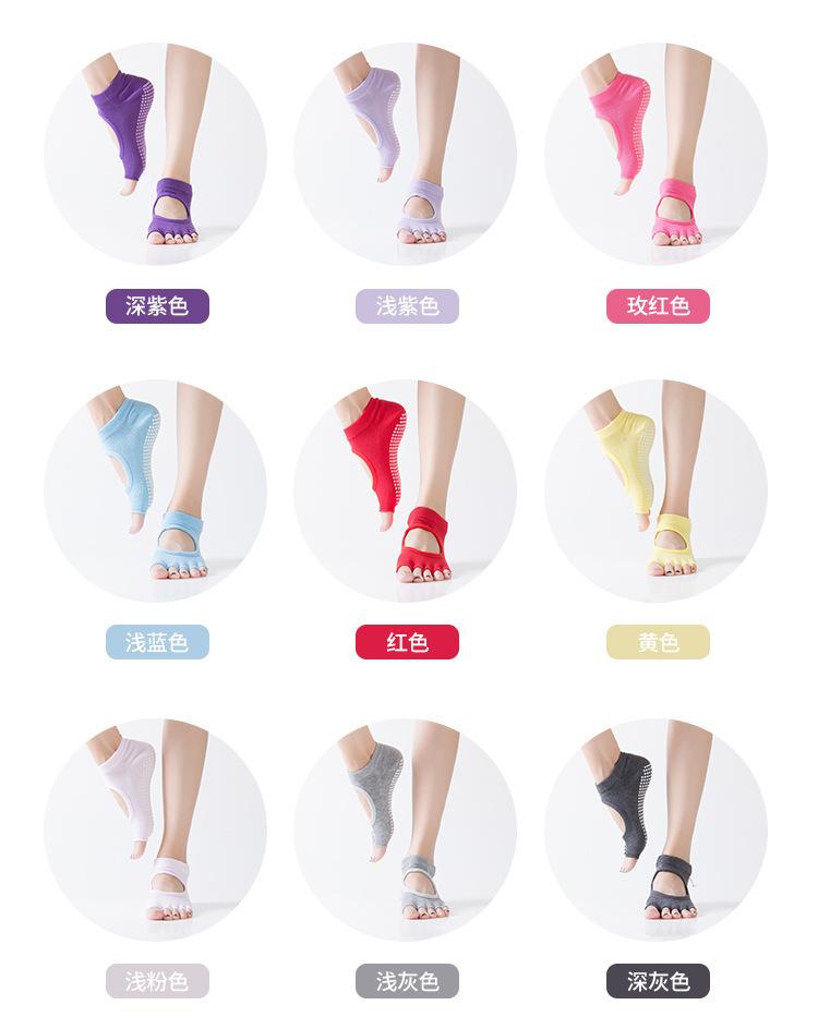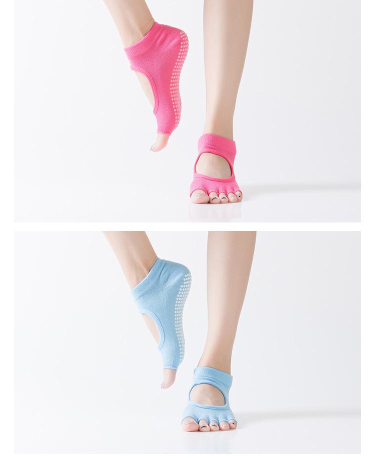 Compre Meias Yoga Short Open Toe Backless Primavera e Verão Dedo Antiderrapante Meias Pilates Mulheres Profissional Meias de cinco dedos no atacado no Joom.pro