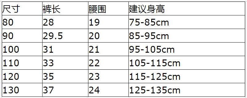 80cm, 90cm, 100cm, 110cm, 120cm, 130cm
