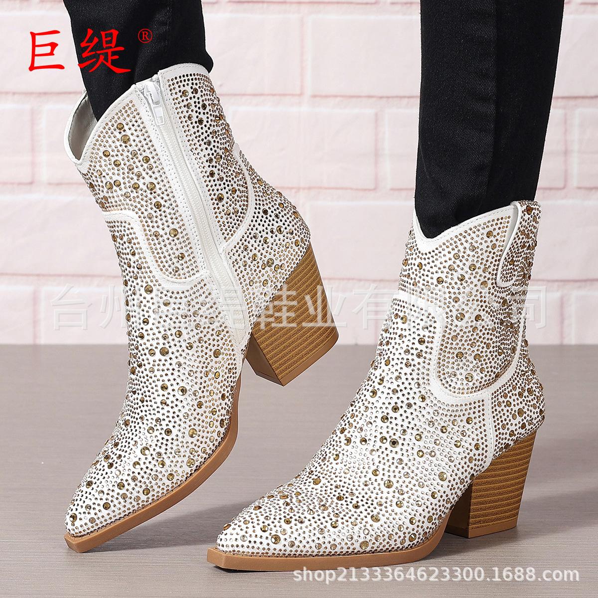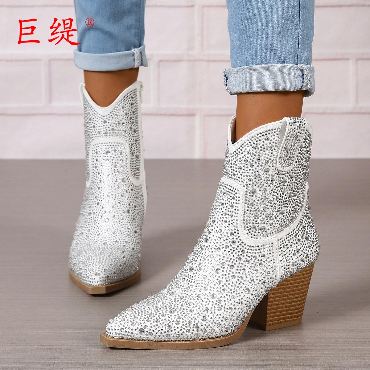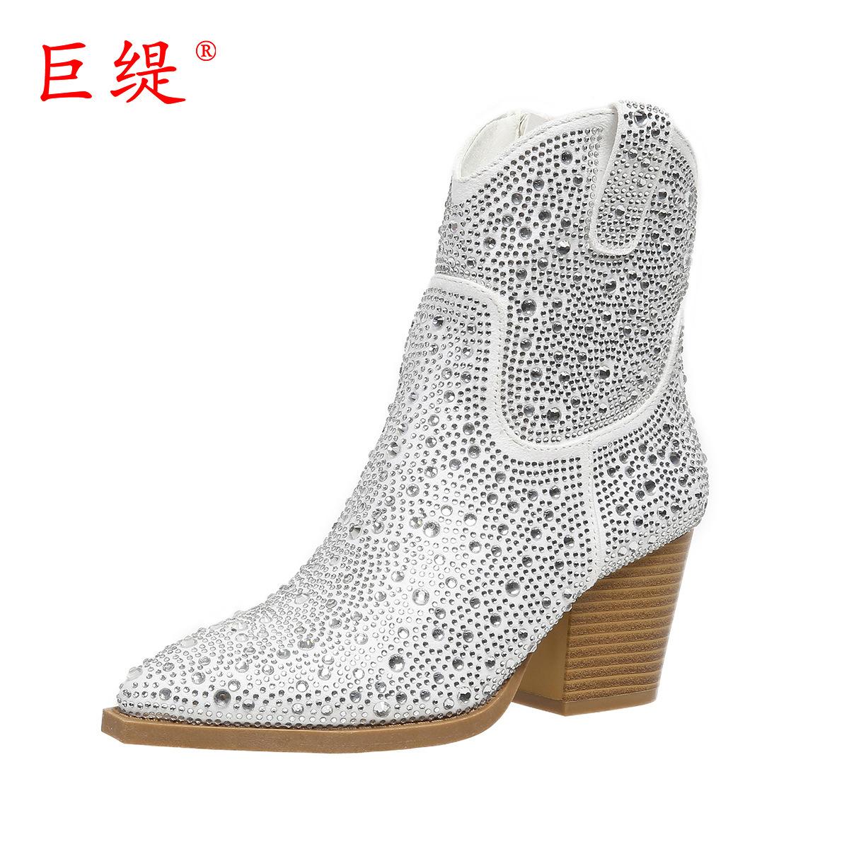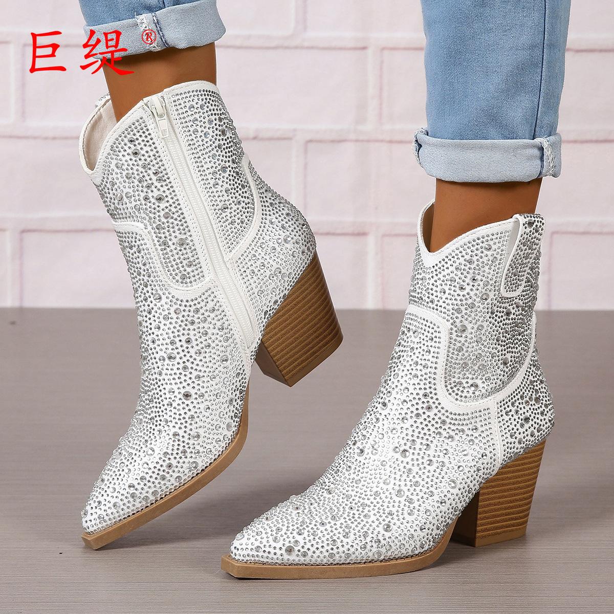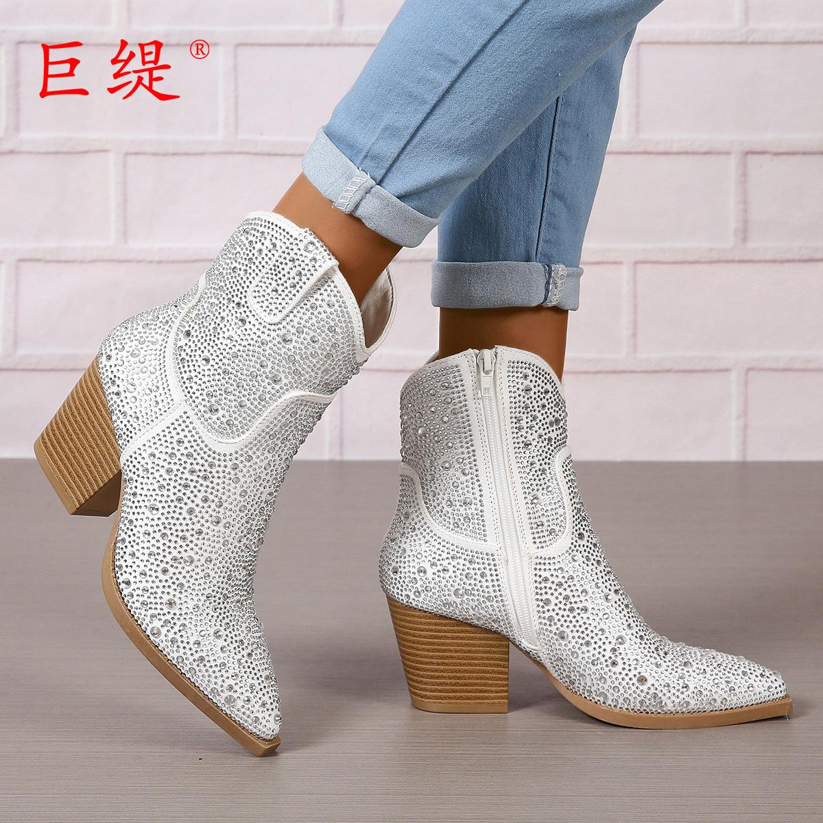 Juti 2023 outono e inverno novo comércio exterior plus size botas femininas diamante WISH Amazon Botas de couro femininas europeias e americanas