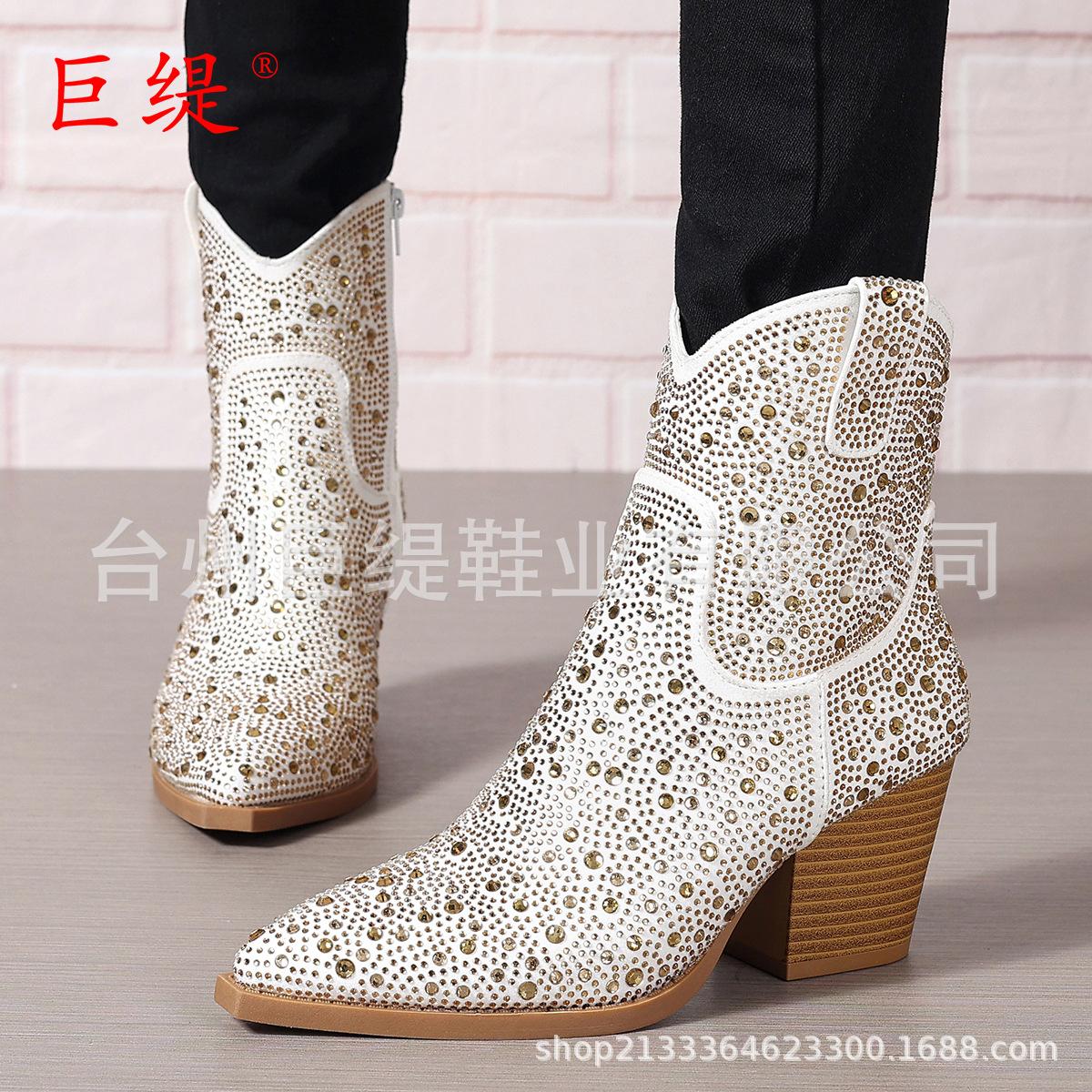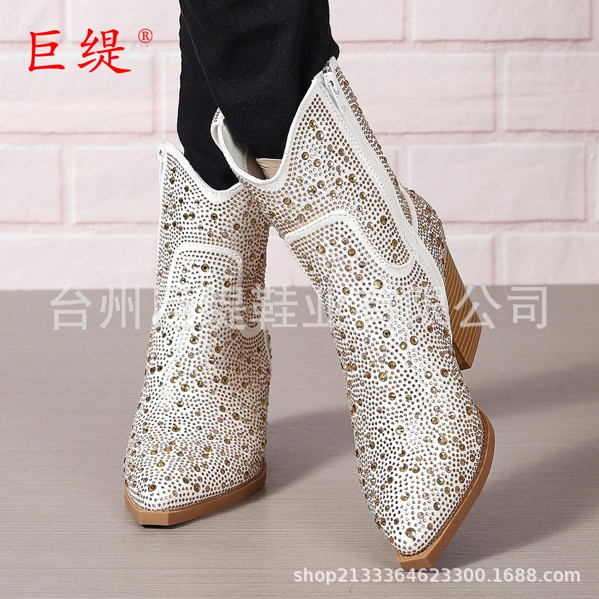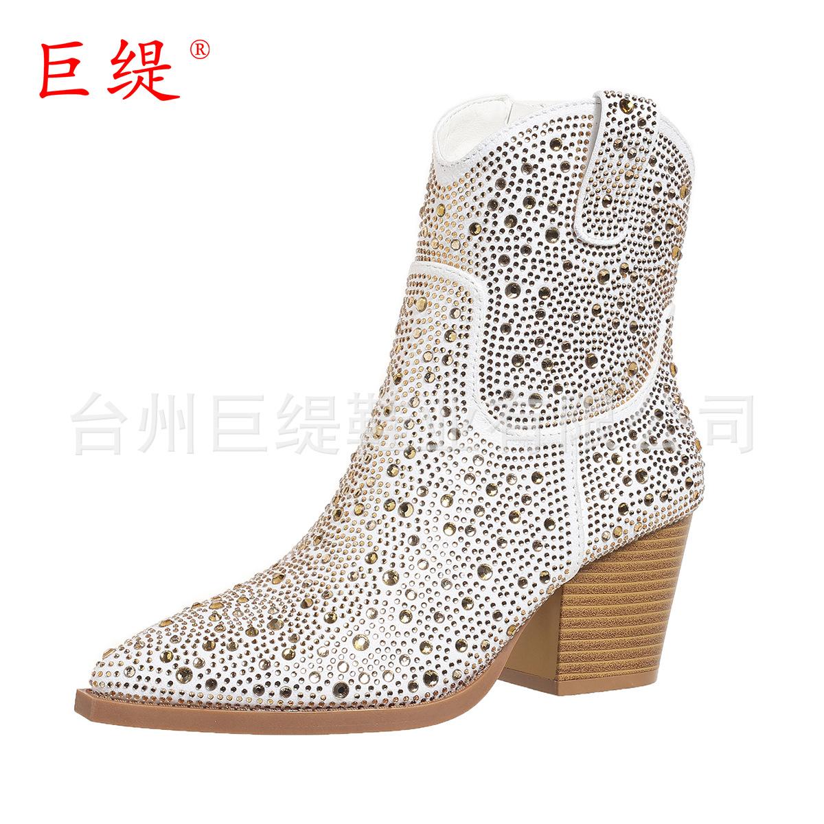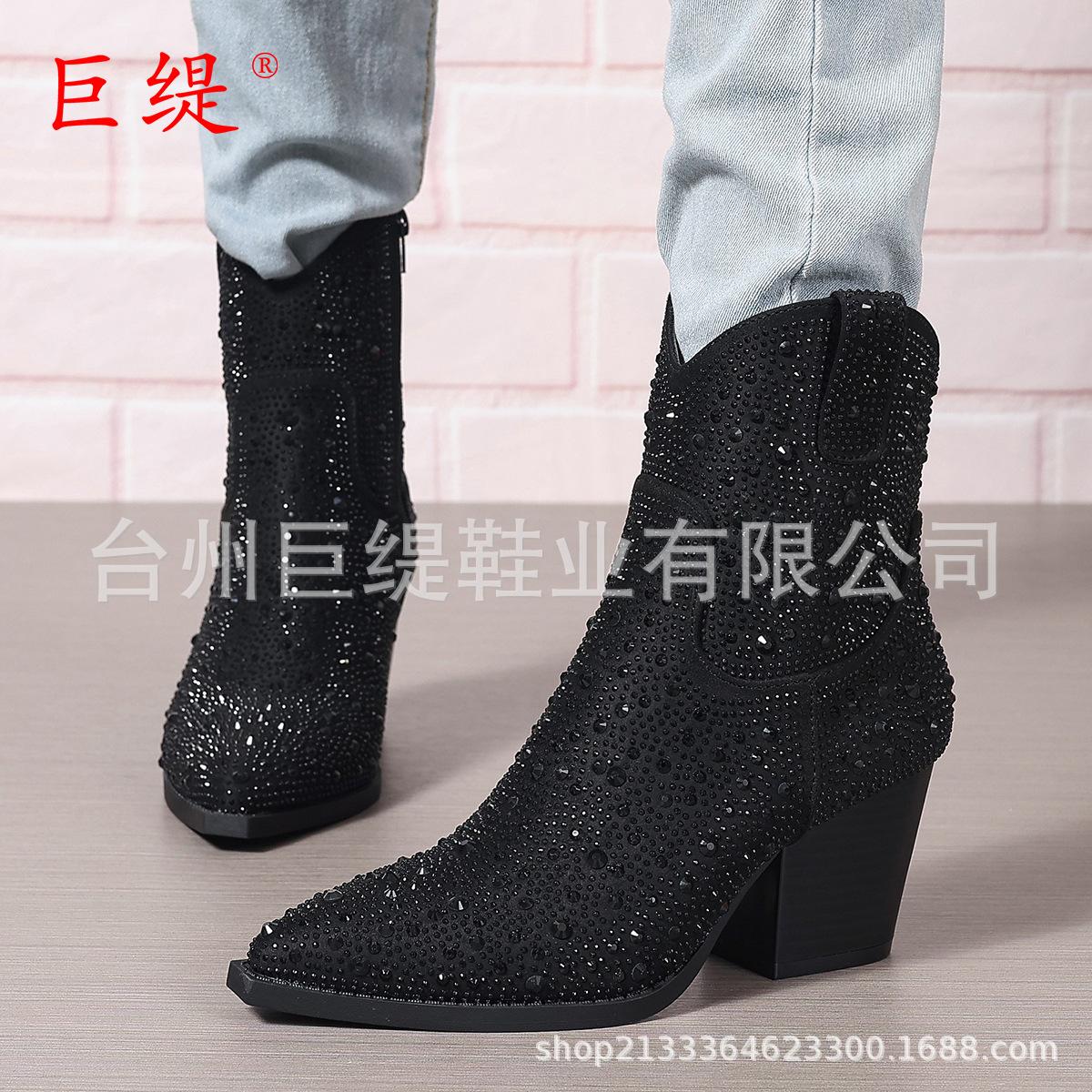Juti 2023 outono e inverno novo comércio exterior plus size botas femininas diamante WISH Amazon Botas de couro femininas europeias e americanas