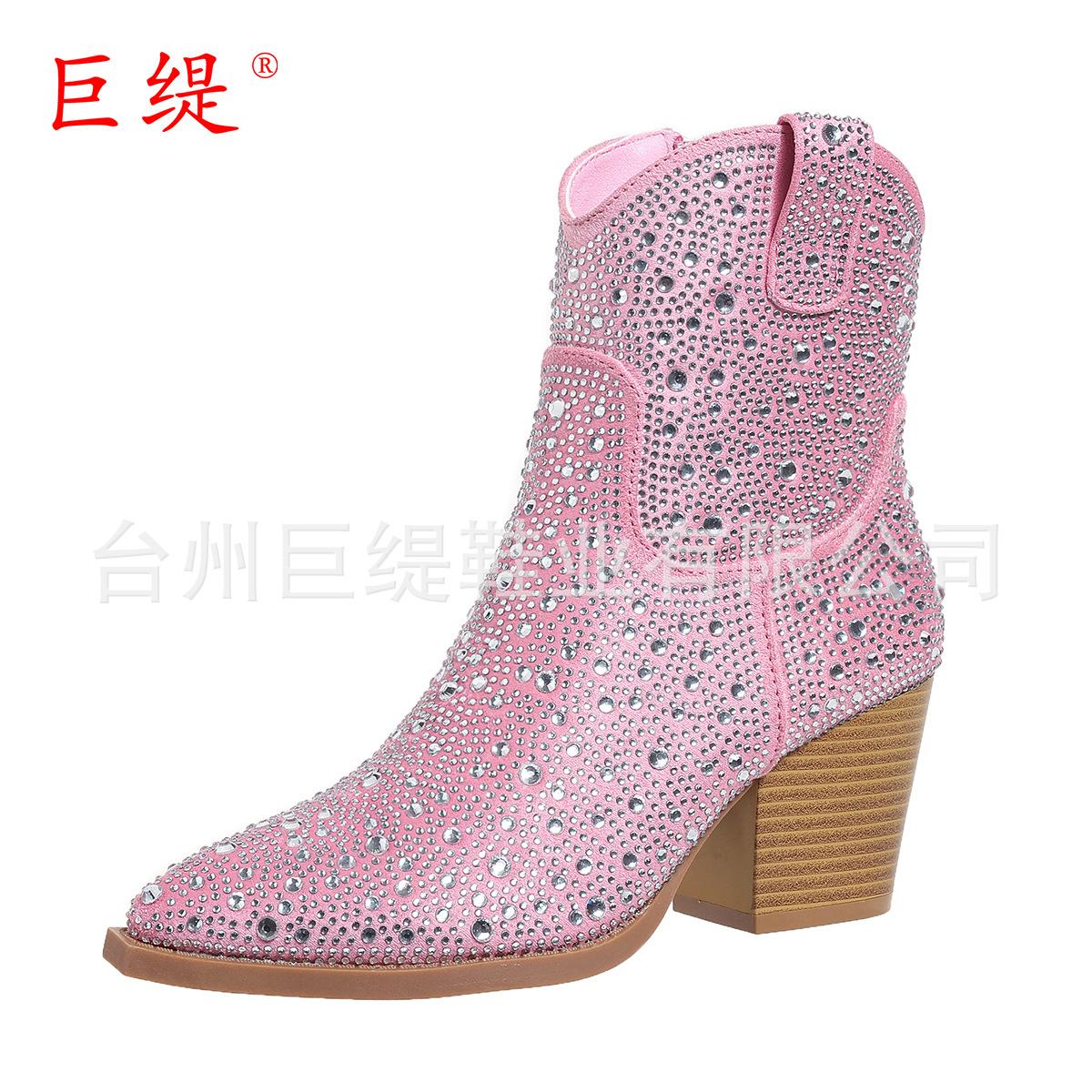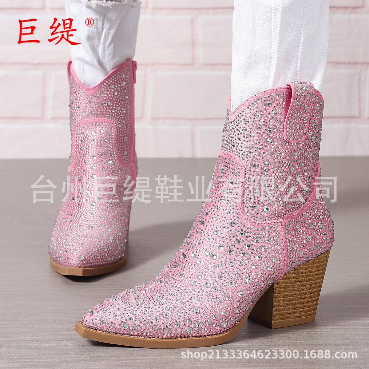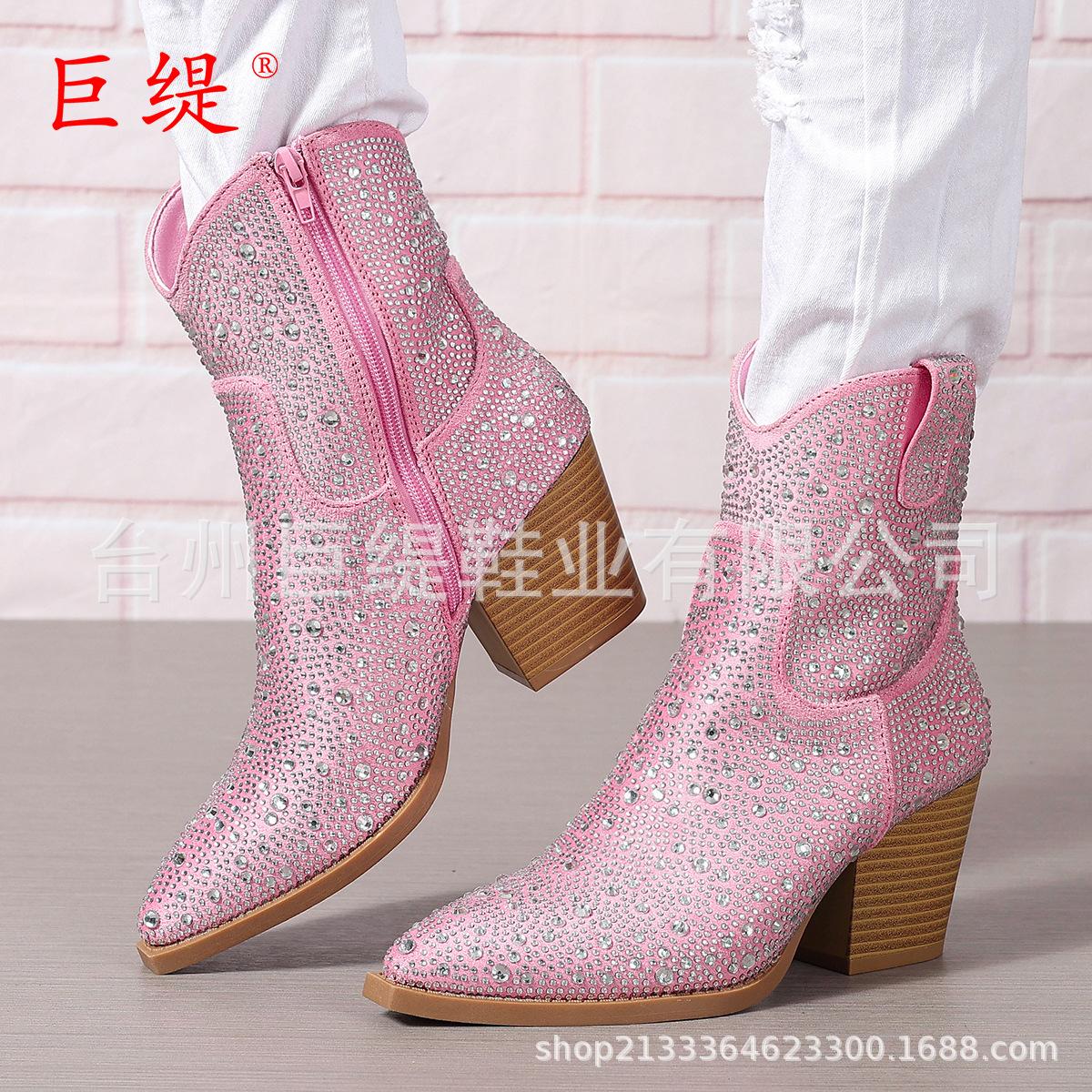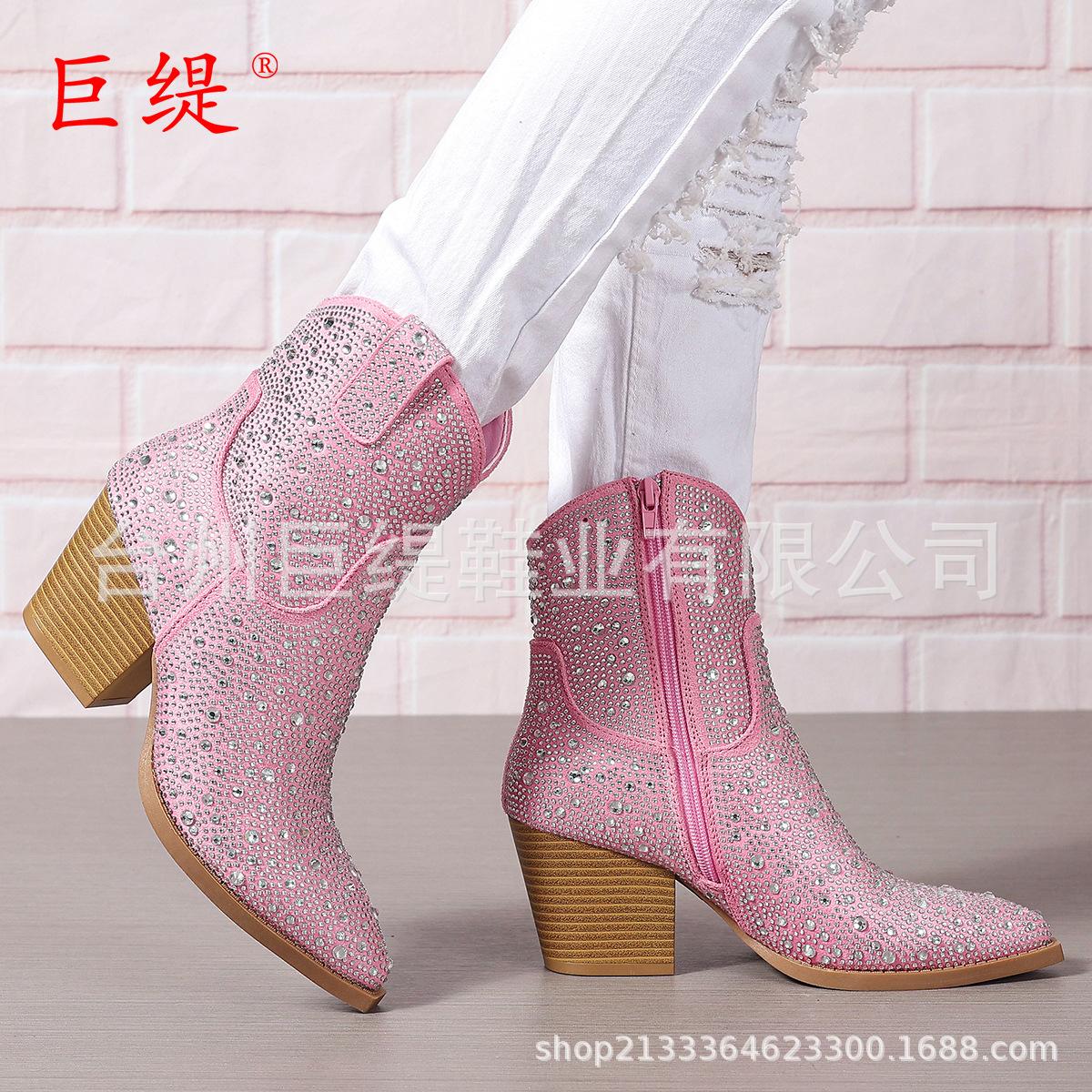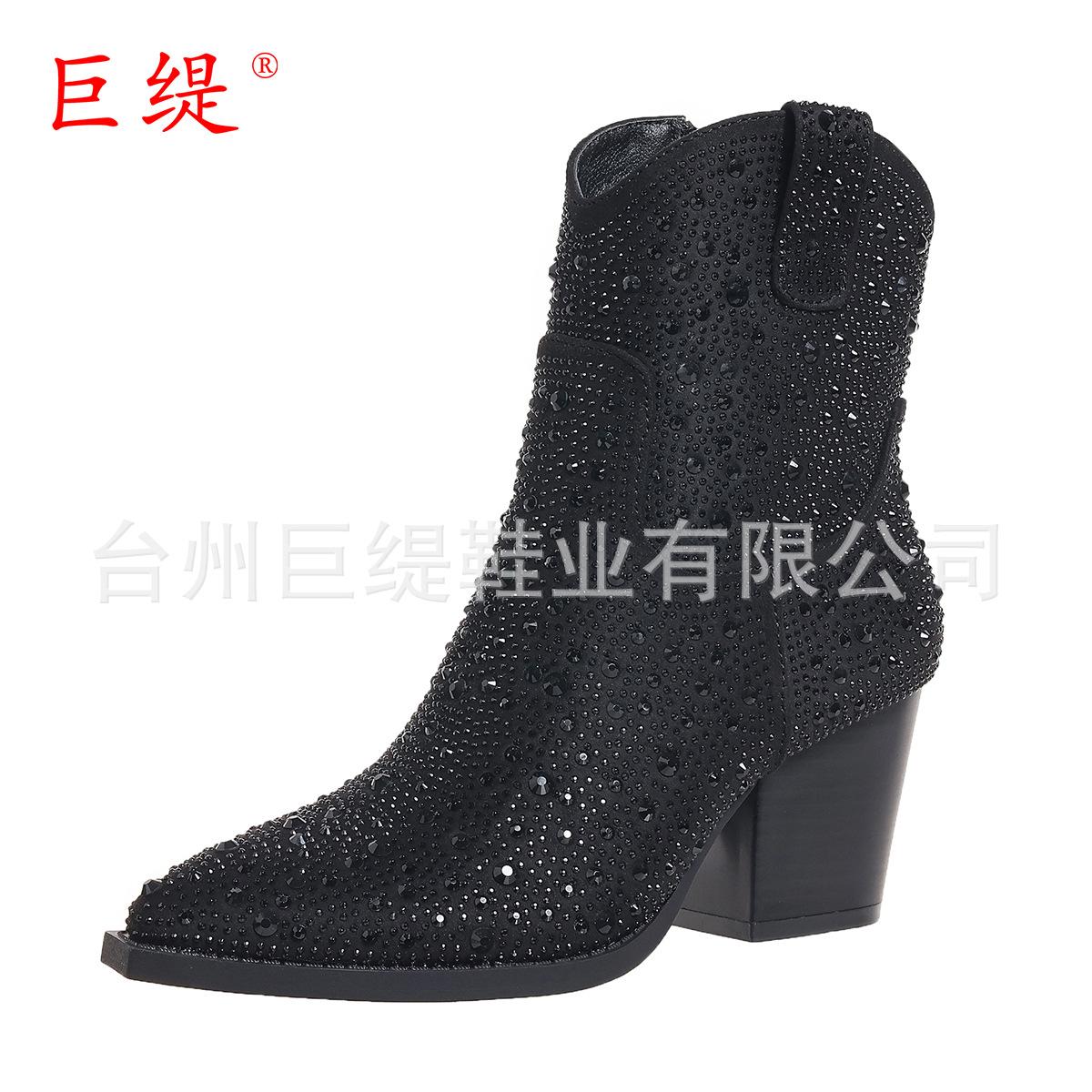 Juti 2023 outono e inverno novo comércio exterior plus size botas femininas diamante WISH Amazon Botas de couro femininas europeias e americanas