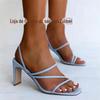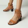 Comércio exterior europeu e americano Novo plus size salto alto tornozelo alça sandálias mulheres dedo quadrado salto grosso sexy moda sandálias desejo