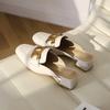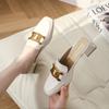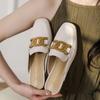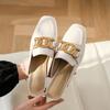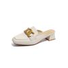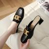 Couro genuíno Baotou Half Slippers Block Heel Outer Wear Mueller Sandálias e chinelos 2023 Verão Novo All-match Mid-heel Half-support Single-layer Shoes