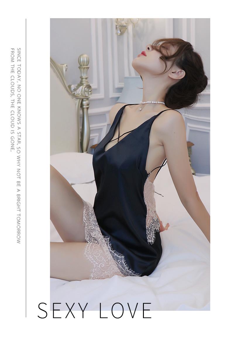 Longa noite sexy lingerie pijama sexy tentação renda borda alça nightdress backless passion suit feminino 1229