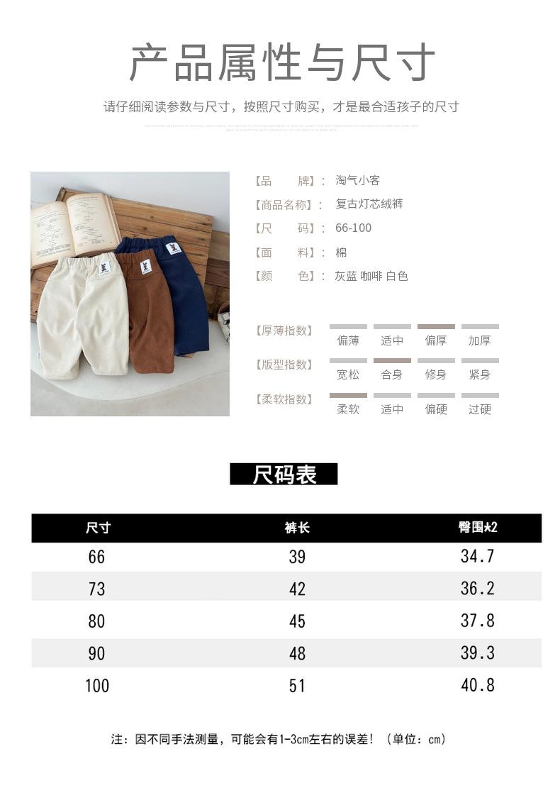 Estilo coreano Calças de bebê outono e inverno baby boys retrô corduroy calças espessas outono meninos casuais all-matching calças inverno