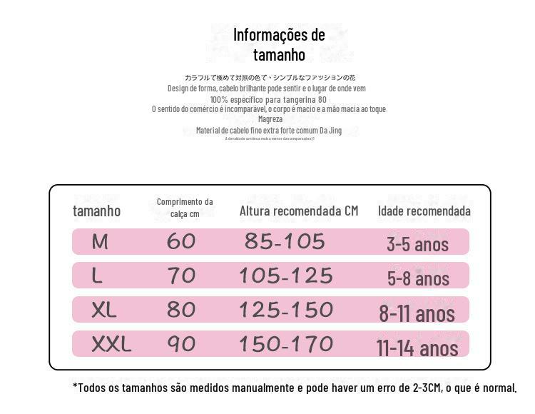 M size (height 85-105cm), L code (height 105-120cm), XL code (height 120-140cm), XXL code (height 140-165cm)