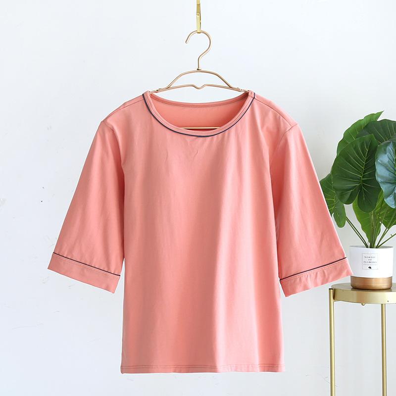 Camiseta feminina de verão, manga três quartos, de algodão de porcelana gelada, com bojo no peito, solta, casual, cor sólida, para uso doméstico, atacado