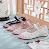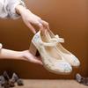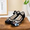 Retro Novo Estilo Chinês Cheongsam Sapatos Salto Médio Fundo Macio Rosto Macio Velho Pequim Bordado Design Sentido Dedo Do Pé Redondo Hanfu Sapatos de Pano