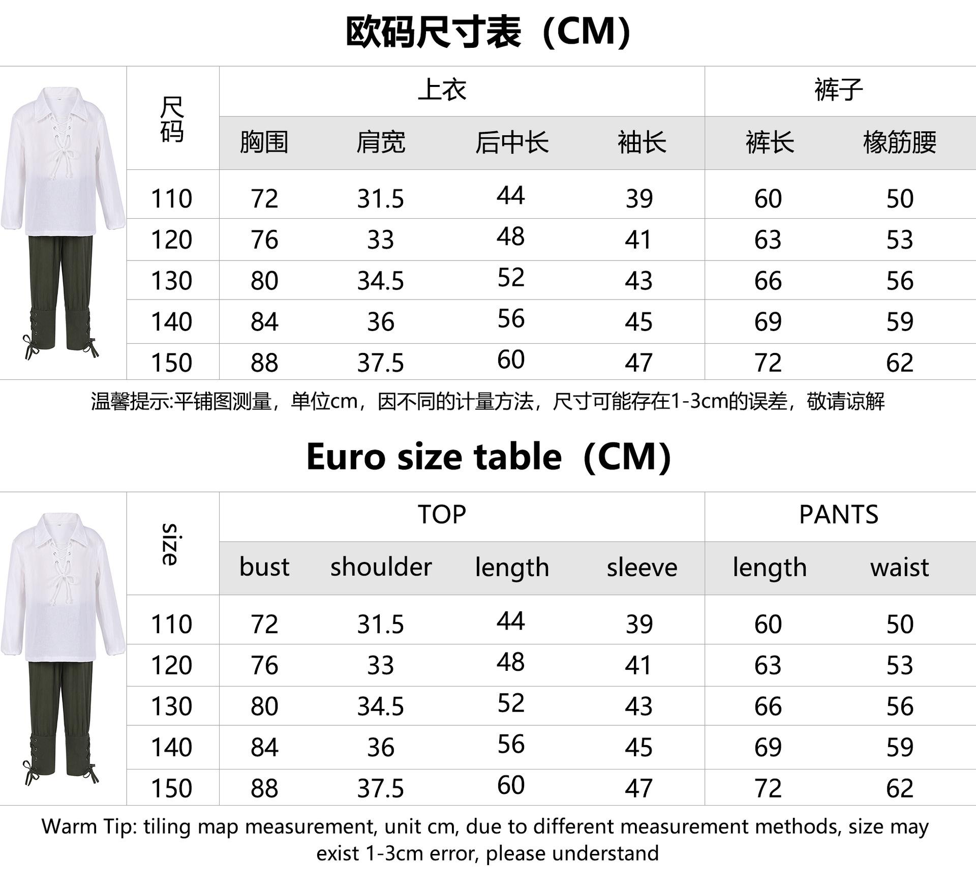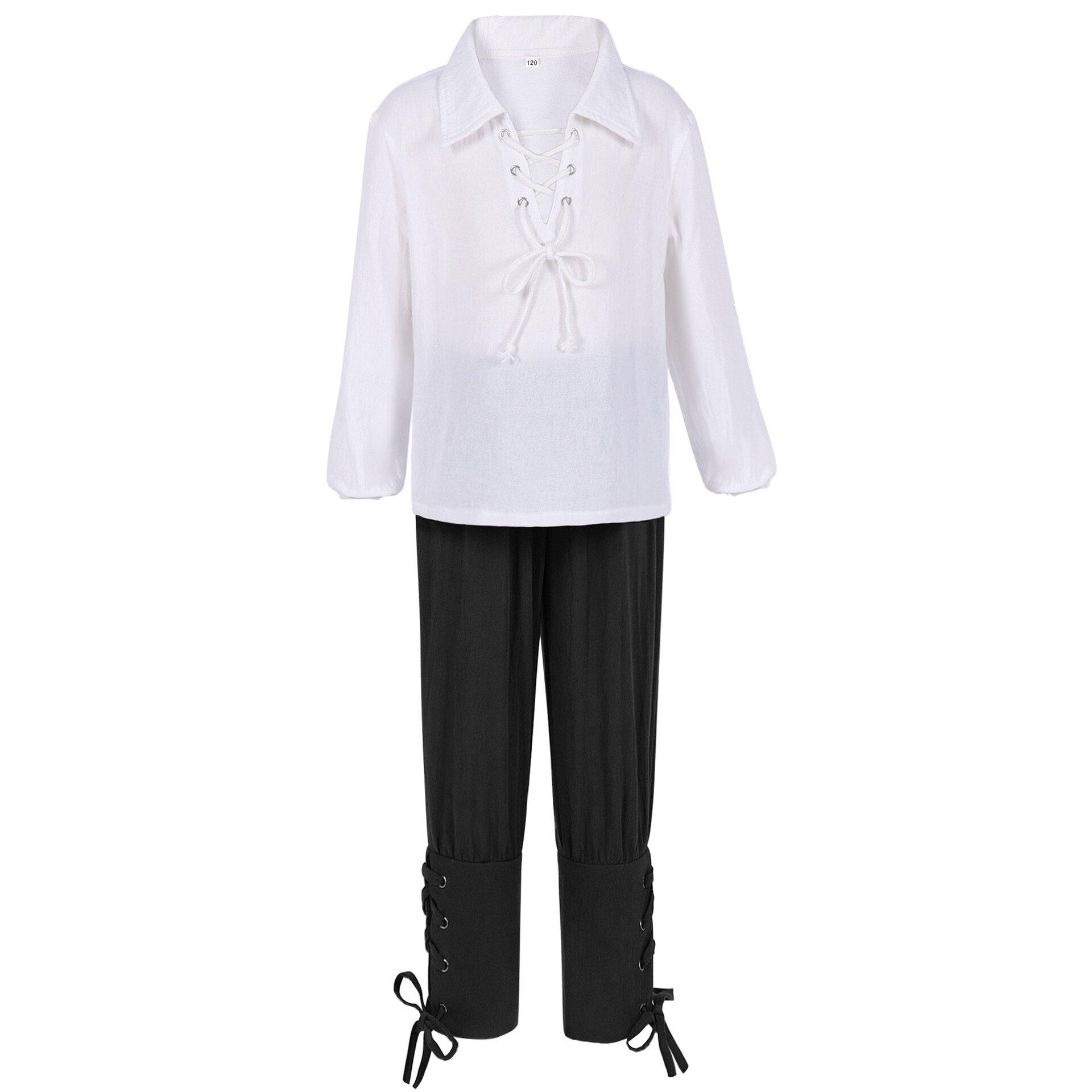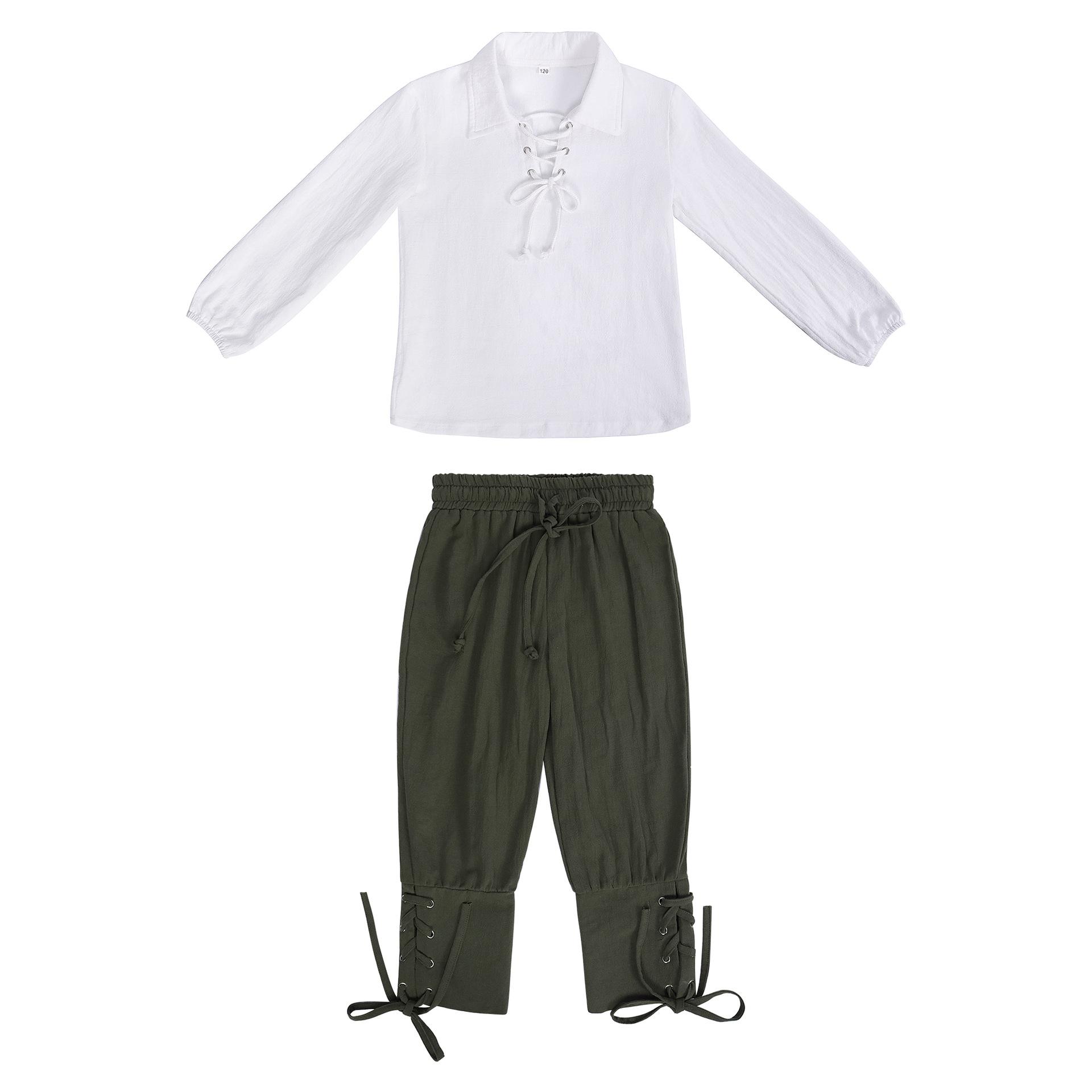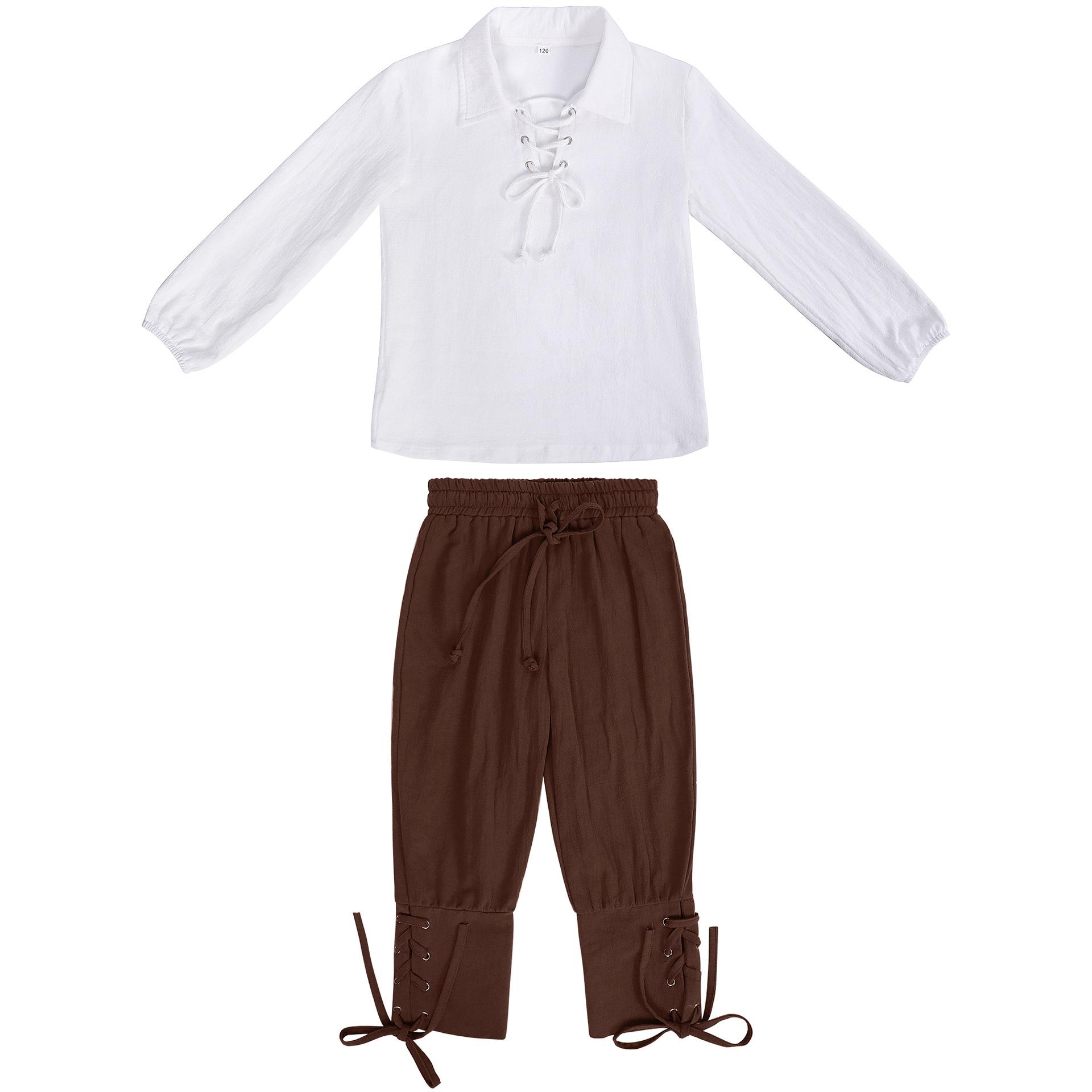 Traje de Pirata Medieval Camisa Calças Nove Pontos Infantil Renascimento Halloween Escocês Jacob