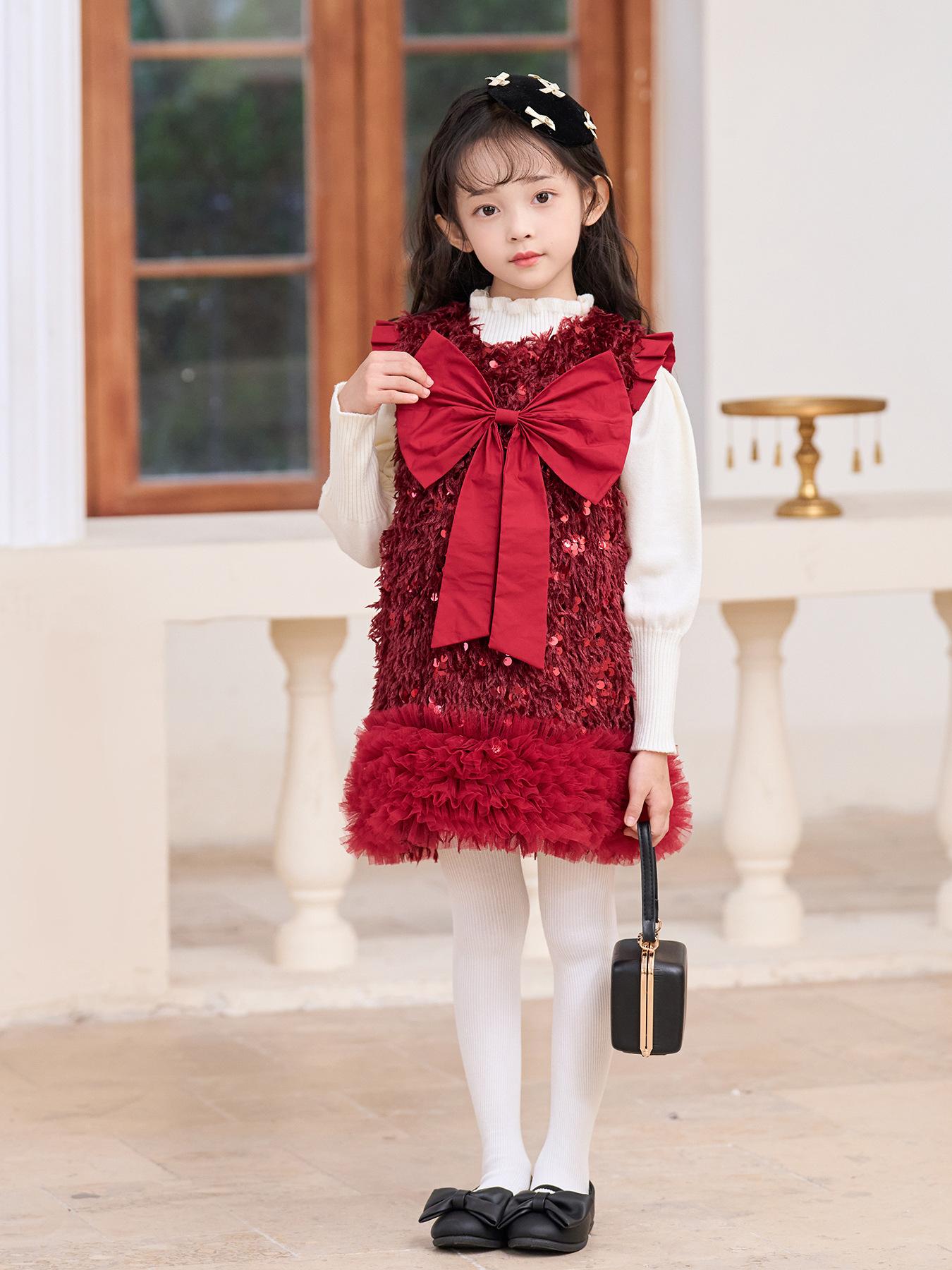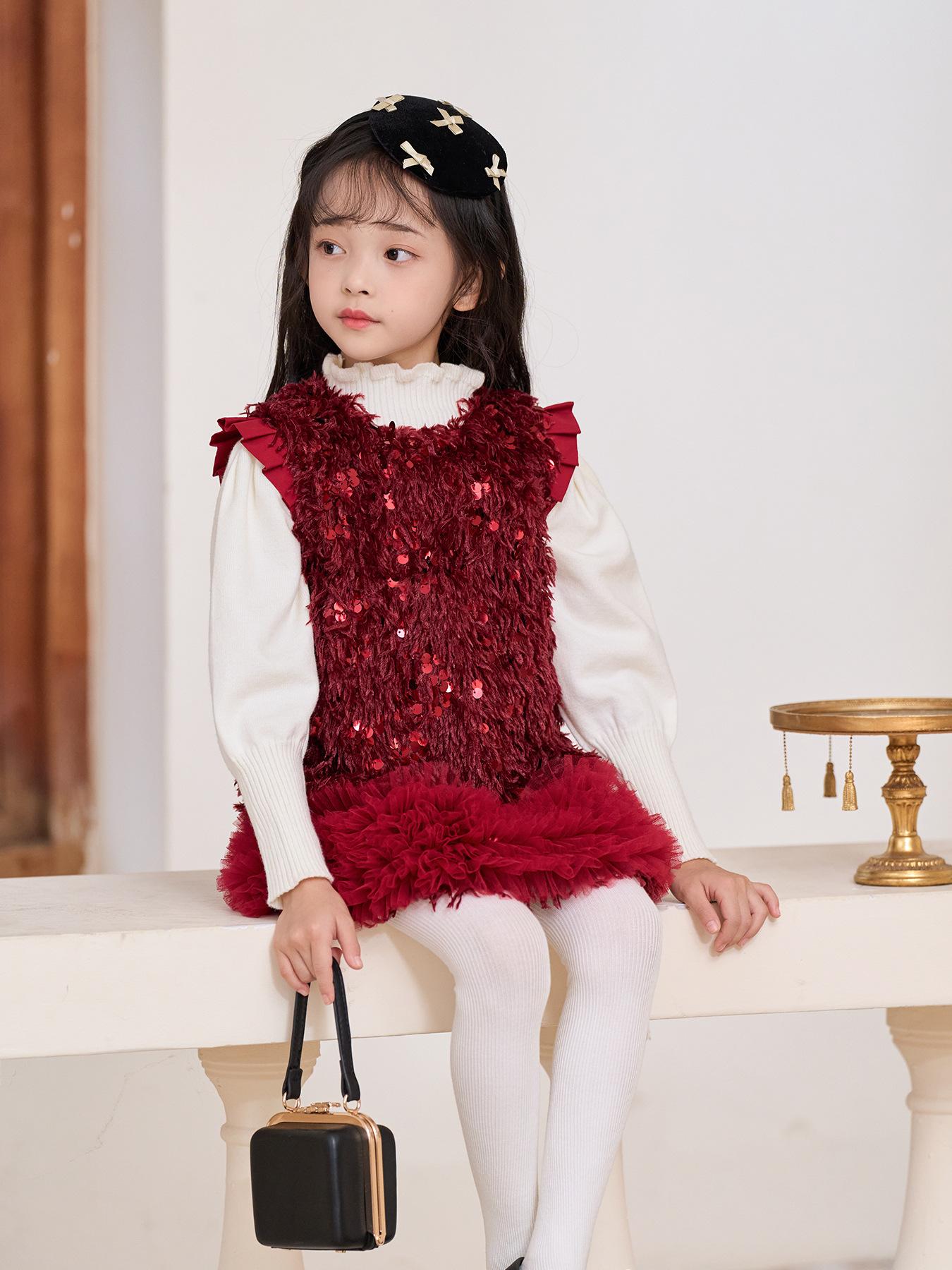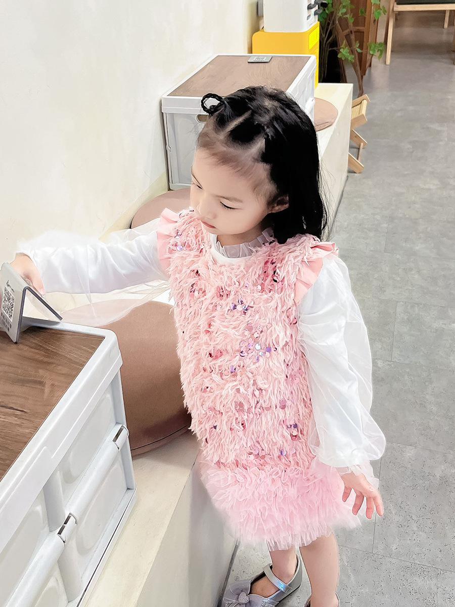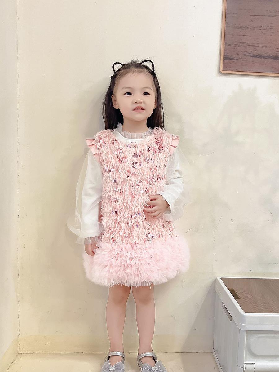 Vestido Colete de Lantejoulas Outono 2025 Moda Novo Vestido de Princesa para Meninas Vestido Infantil Vestido de Tule