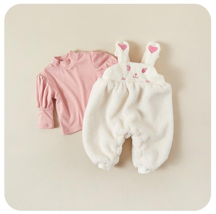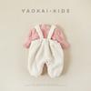 Roupas de bebê fofas de inverno estilo ocidental camisa de assentamento quente calças de suspensório terno macacão infantil macacão