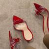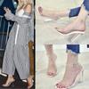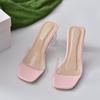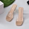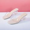 Chinelos Salto Alto Salto Cristal Salto Grosso Salto Médio com Transparente Respirável Europeu e Americano Estilo Sandálias Moda Sapatos Femininos