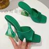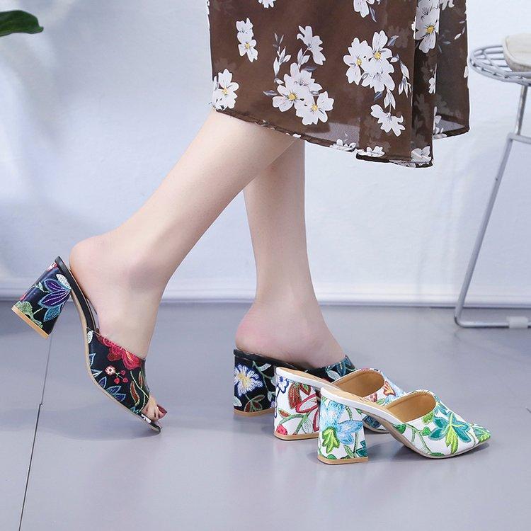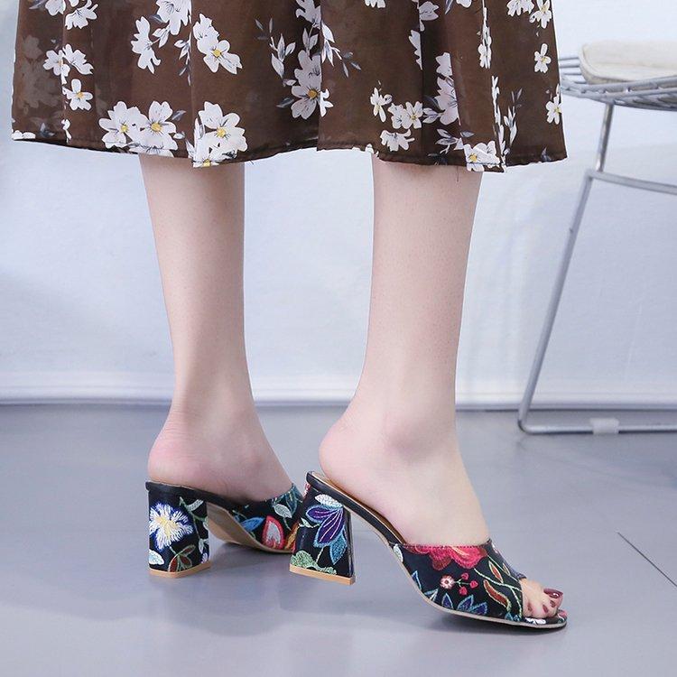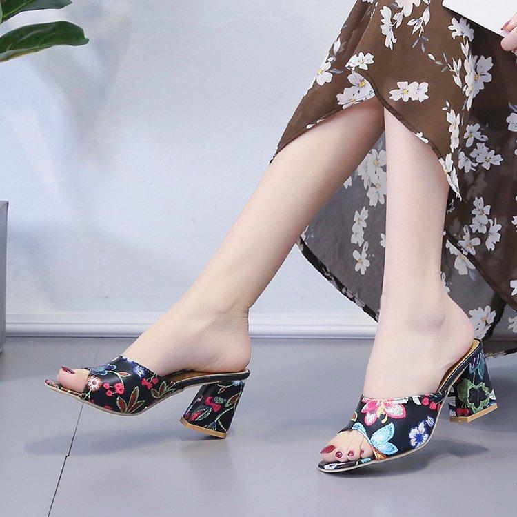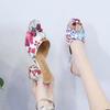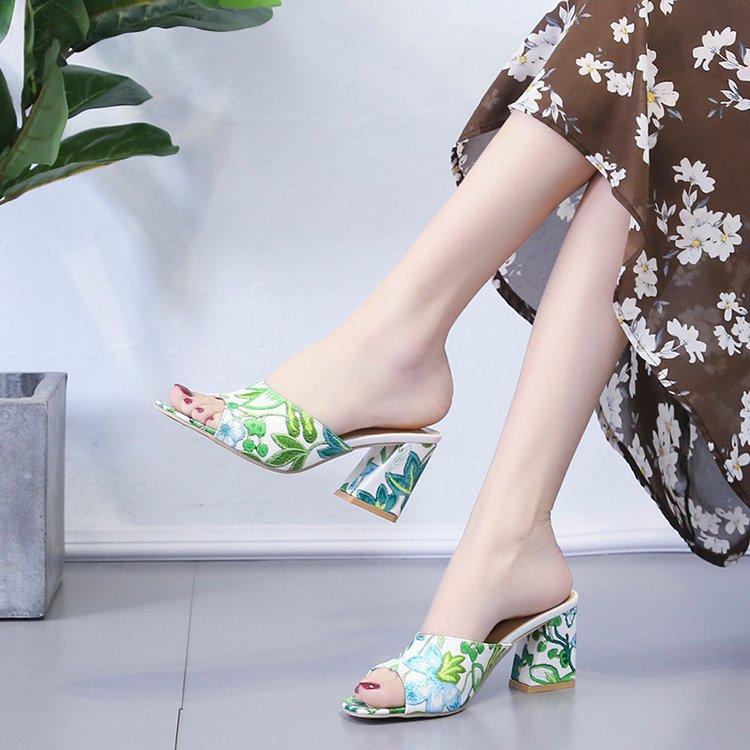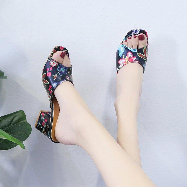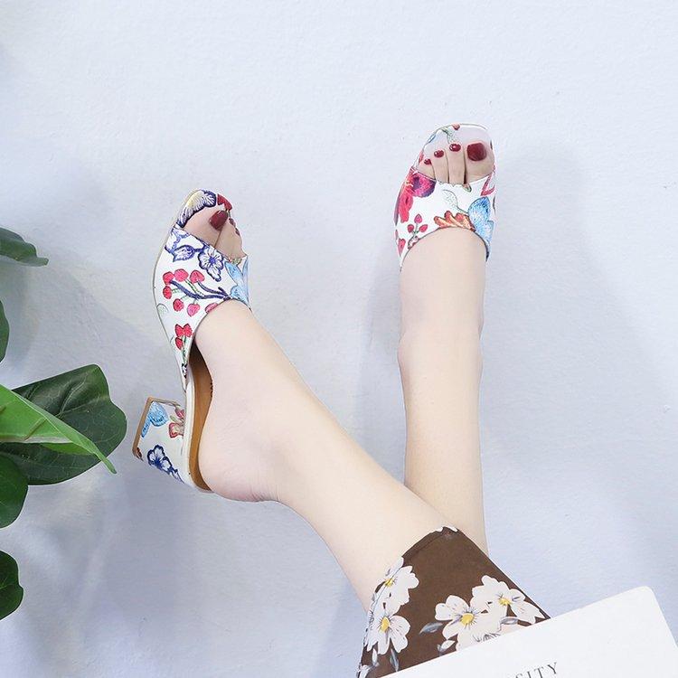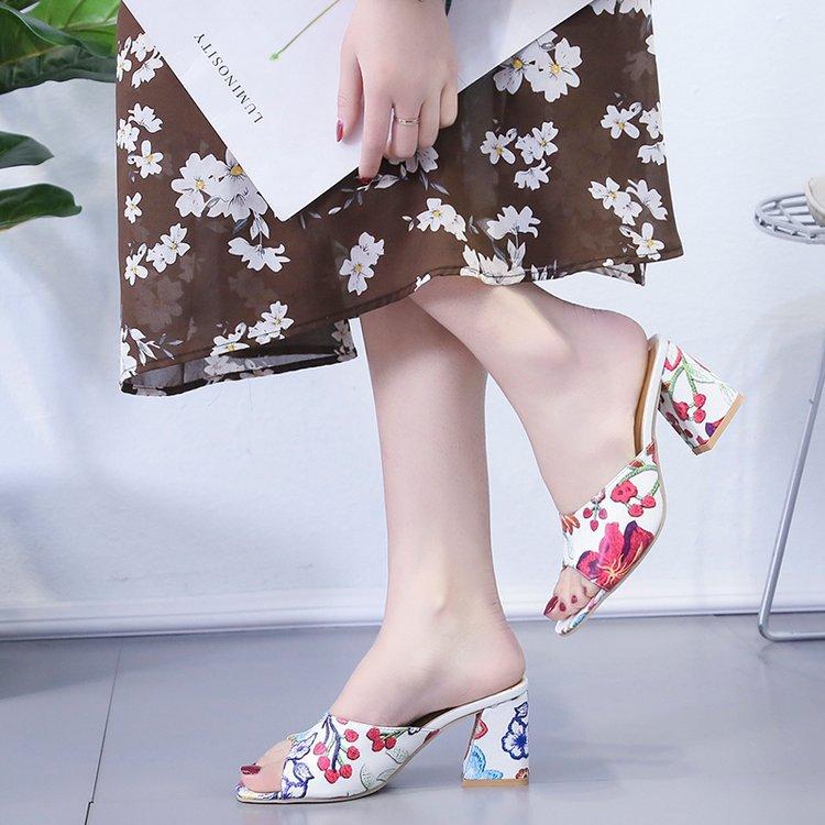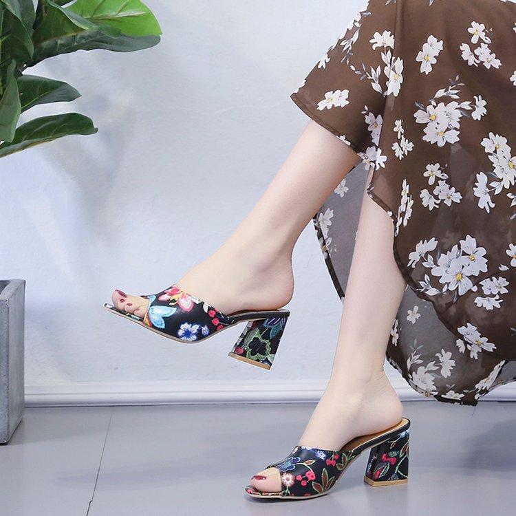 Chinelo de Salto Alto Boca de Peixe de Uma Linha para Comércio Exterior Europeu e Americano para Mulheres Bico Quadrado Salto Grosso Sandálias Romanas da Moda