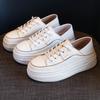 Sapatos Brancos para Mulheres 2025 Novo Popular de Primavera Couro Genuíno Sola Grossa Sapatilhas Sapatos Femininos Versátil Dois Modos Sapatos Respiráveis