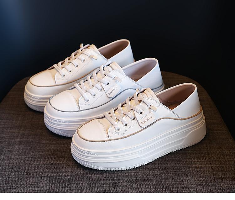 Compre Sapatos Brancos para Mulheres 2025 Novo Popular de Primavera Couro Genuíno Sola Grossa Sapatilhas Sapatos Femininos Versátil Dois Modos Sapatos Respiráveis no atacado no Joom.pro