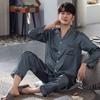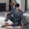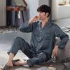 Han Yatong Cetim Gelo Seda Homens Calças de manga comprida Primavera e Verão Cor Sólida Home Suit Outono Pijamas Novo Cinza Azul