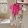 Terno das meninas livre combinando alça de manga curta top com calças verão novo comércio exterior roupas infantis para 3-8 anos de idade