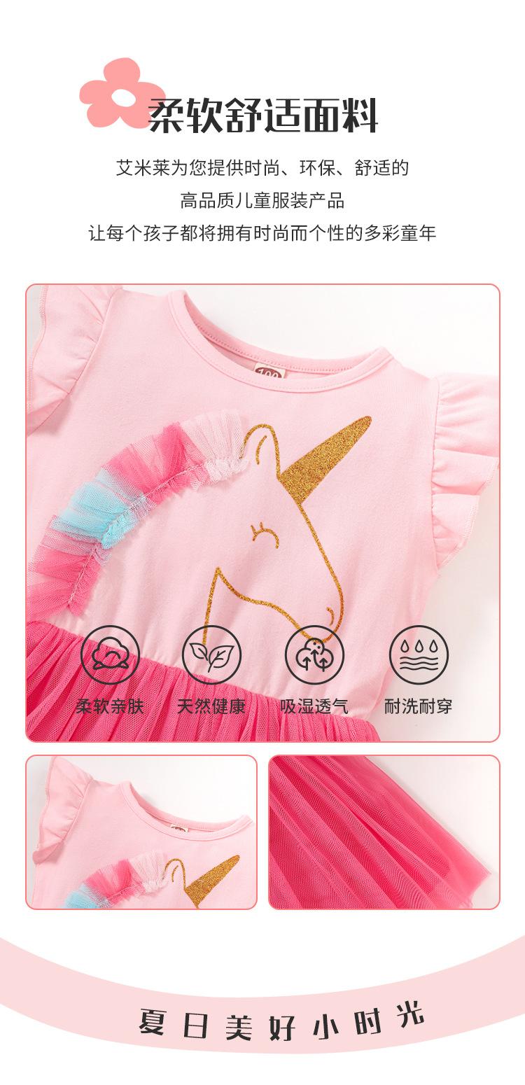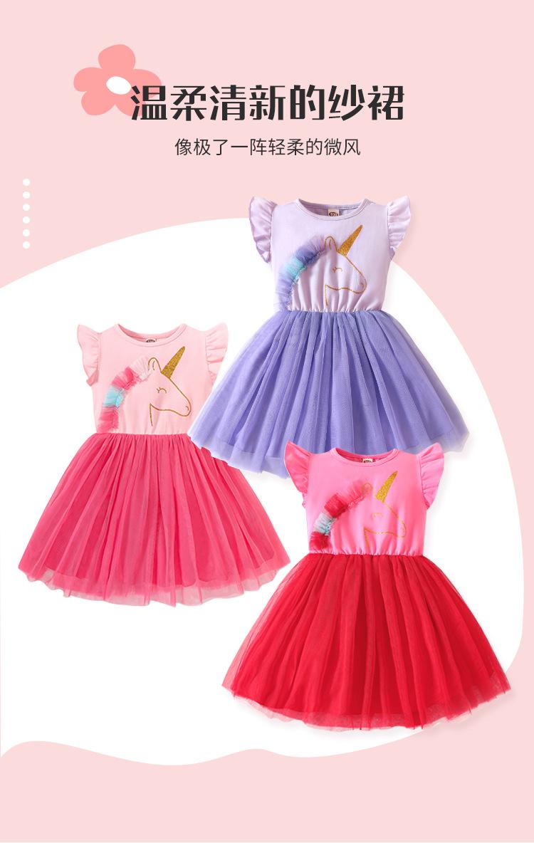 Vestido infantil transfronteiriço para meninas, desenho animado, roupa infantil para performance no palco, vestido de princesa para meninas, vestido tutu de manga curta para meninas