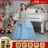 Roupas Infantis Novas Europeias e Americanas Vestido Infantil para Meninas Grandes Flor de Renda Laço Pequena Cauda Vestido de Princesa para Daminha