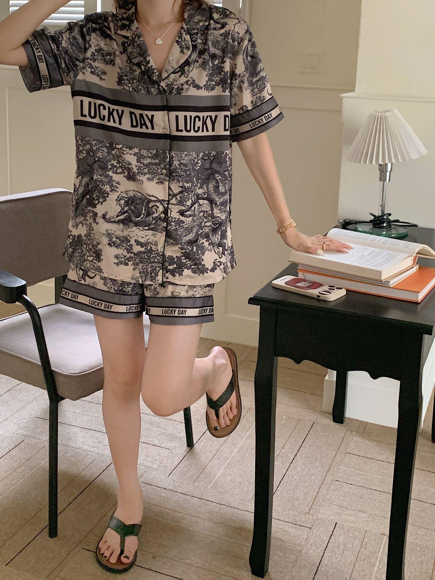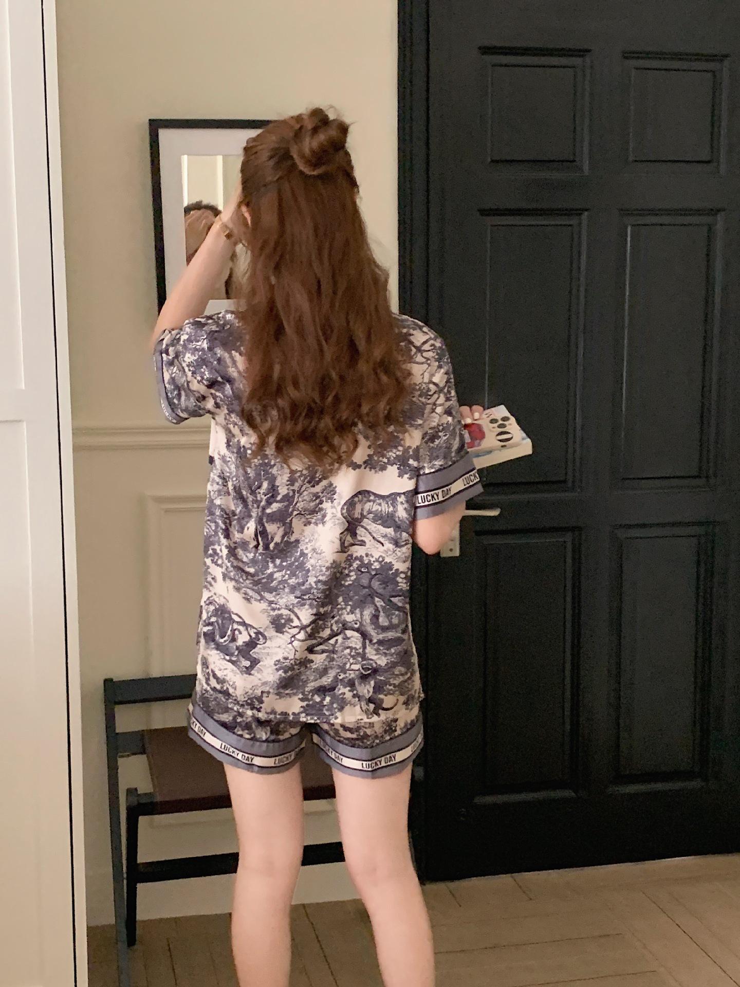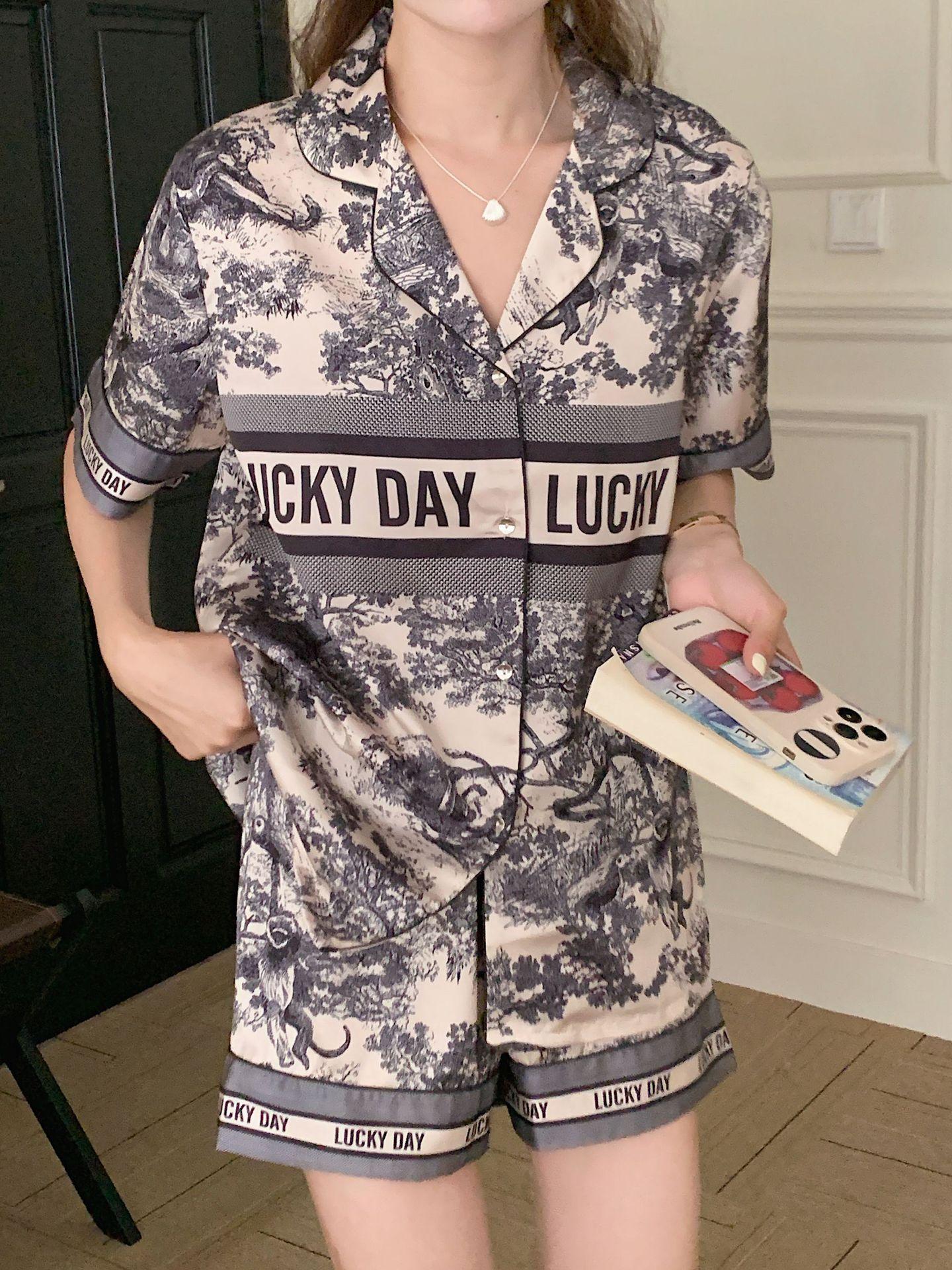 Pijama Jardim dos Sonhos Novo Primavera e Verão 2024 Feminino Manga Curta Shorts Doce Francês Pode Ser Usado Fora Entrega em Domicílio