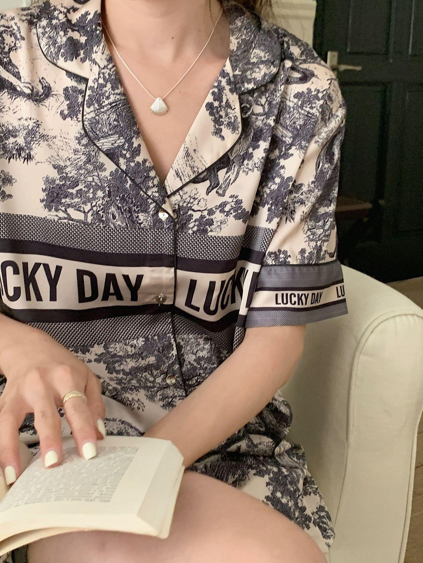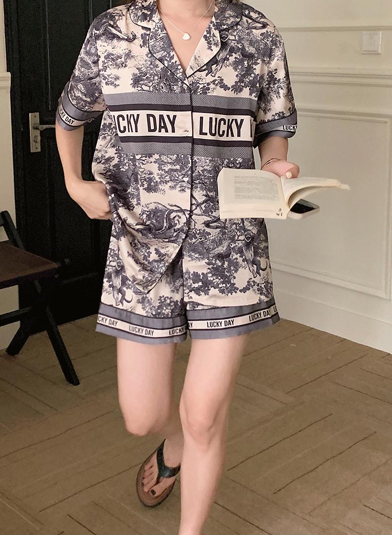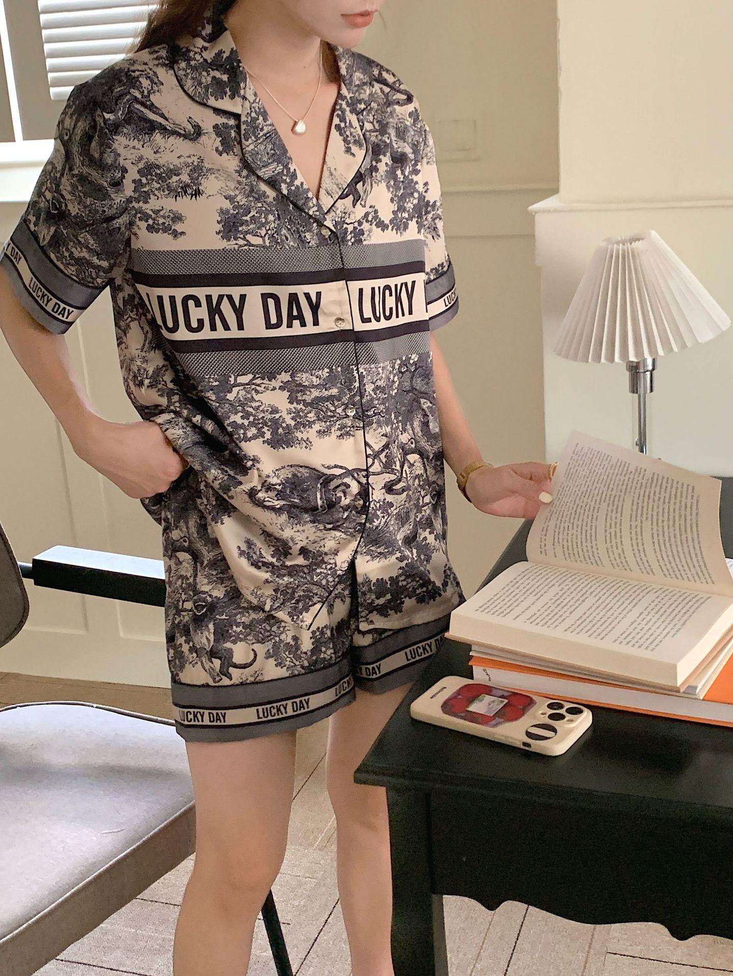 Pijama Jardim dos Sonhos Novo Primavera e Verão 2024 Feminino Manga Curta Shorts Doce Francês Pode Ser Usado Fora Entrega em Domicílio