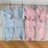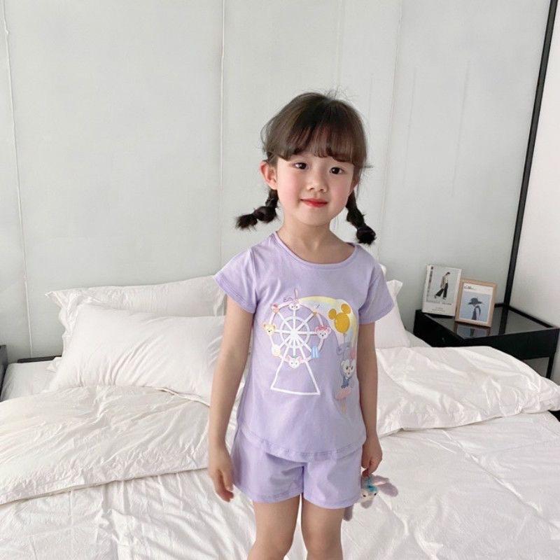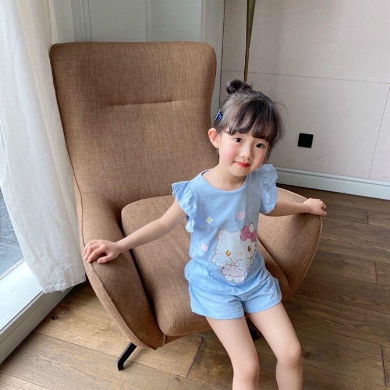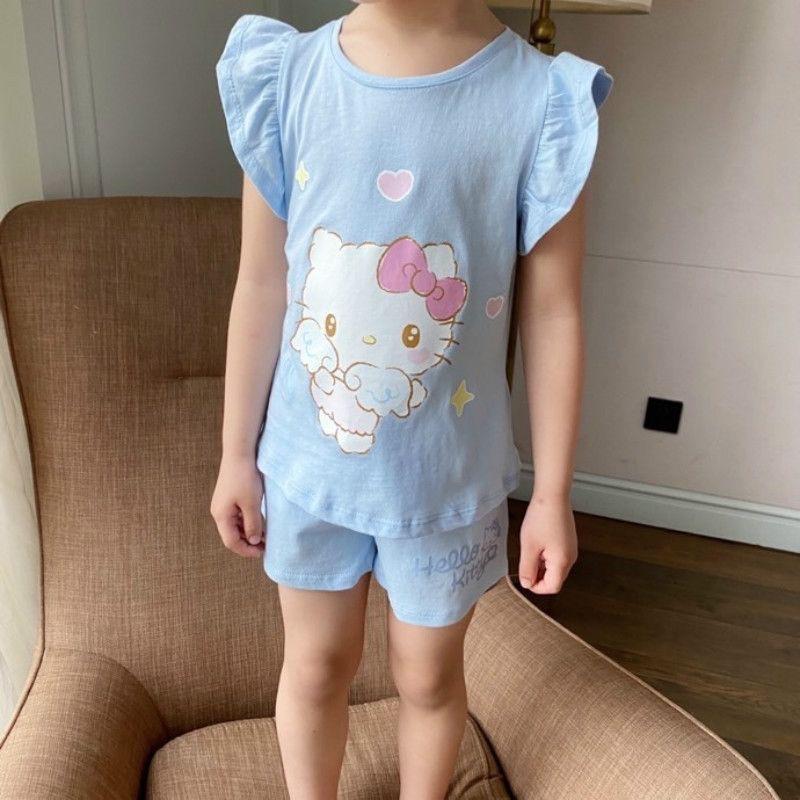 Pijama infantil 2024, novo verão, meninas, bebê, fino, estrela, coelho, ar condicionado, roupas de casa, manga curta, duas peças