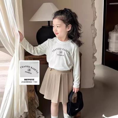 Meninas T-shirt 2024 Primavera Nova All-match Roupas Infantis Tops Estilo Ocidental Letras Camisa de Fundo Infantil Bebê Manga Longa Tendência