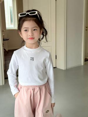 Meninas T-shirt 2024 Primavera Novo All-match Crianças Tops Casual Bebê Bottoming Camisa Estilo Ocidental Roupas Infantis Manga Comprida Tendência