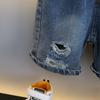 Shorts Jeans de Verão para Meninos 2025 Novos Calças Respiráveis Rasgadas de Comprimento Médio Shorts Elegantes Finos de Cinco Pontos