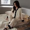 Imitação de pijamas de seda mulheres de manga comprida gelo seda conjunto de duas peças coreano casual cardigan pijamas de seda outwear roupas para casa