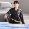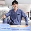 Pijama masculino primavera e outono, algodão puro, com moldura, manga comprida, lapela, cardigan solto, simples, de alta qualidade, para uso doméstico