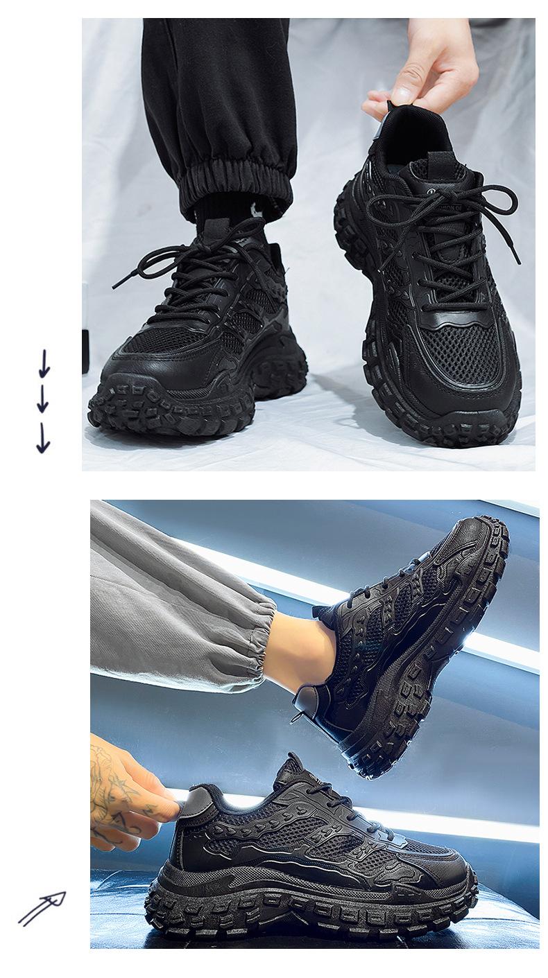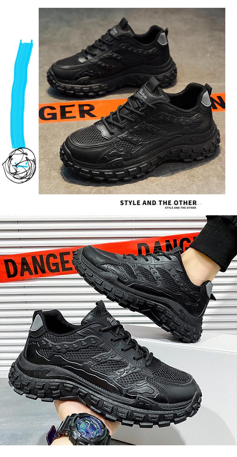 Sapatos de Proteção ao Trabalho Masculino Verão Respirável Resistente ao Desgaste Antiderrapante Pneus Inferior Sapatos de Trabalho Masculino Esportes Pretos Masculinos Aumentando os Sapatos da Moda Torre