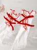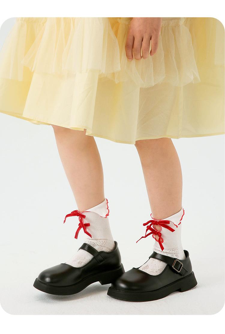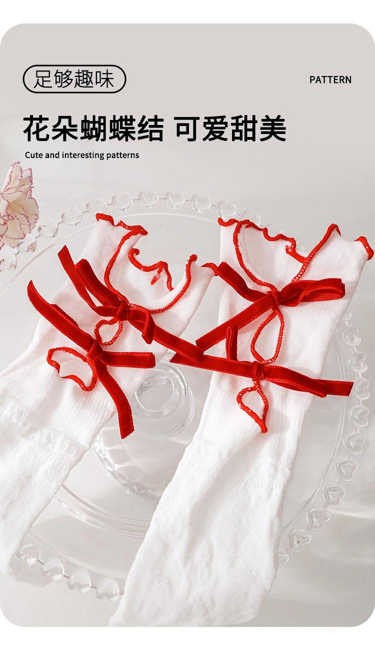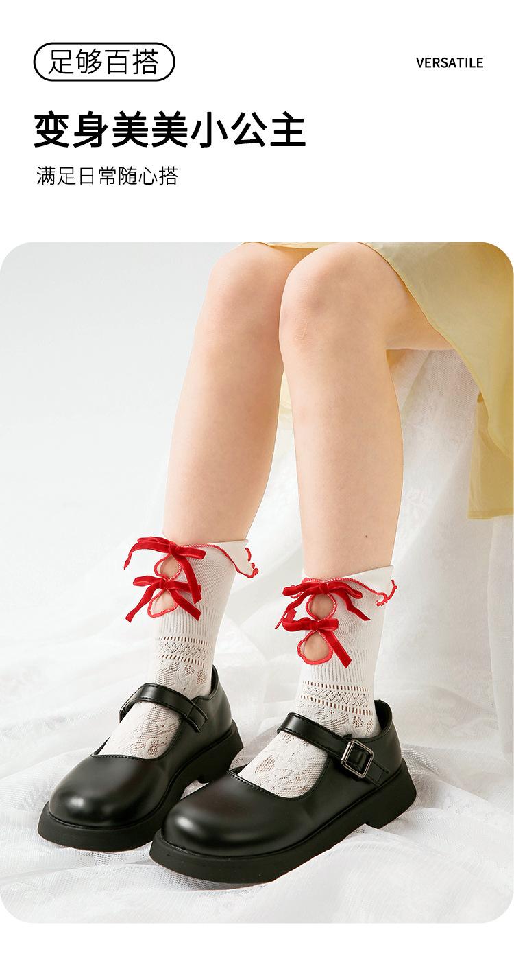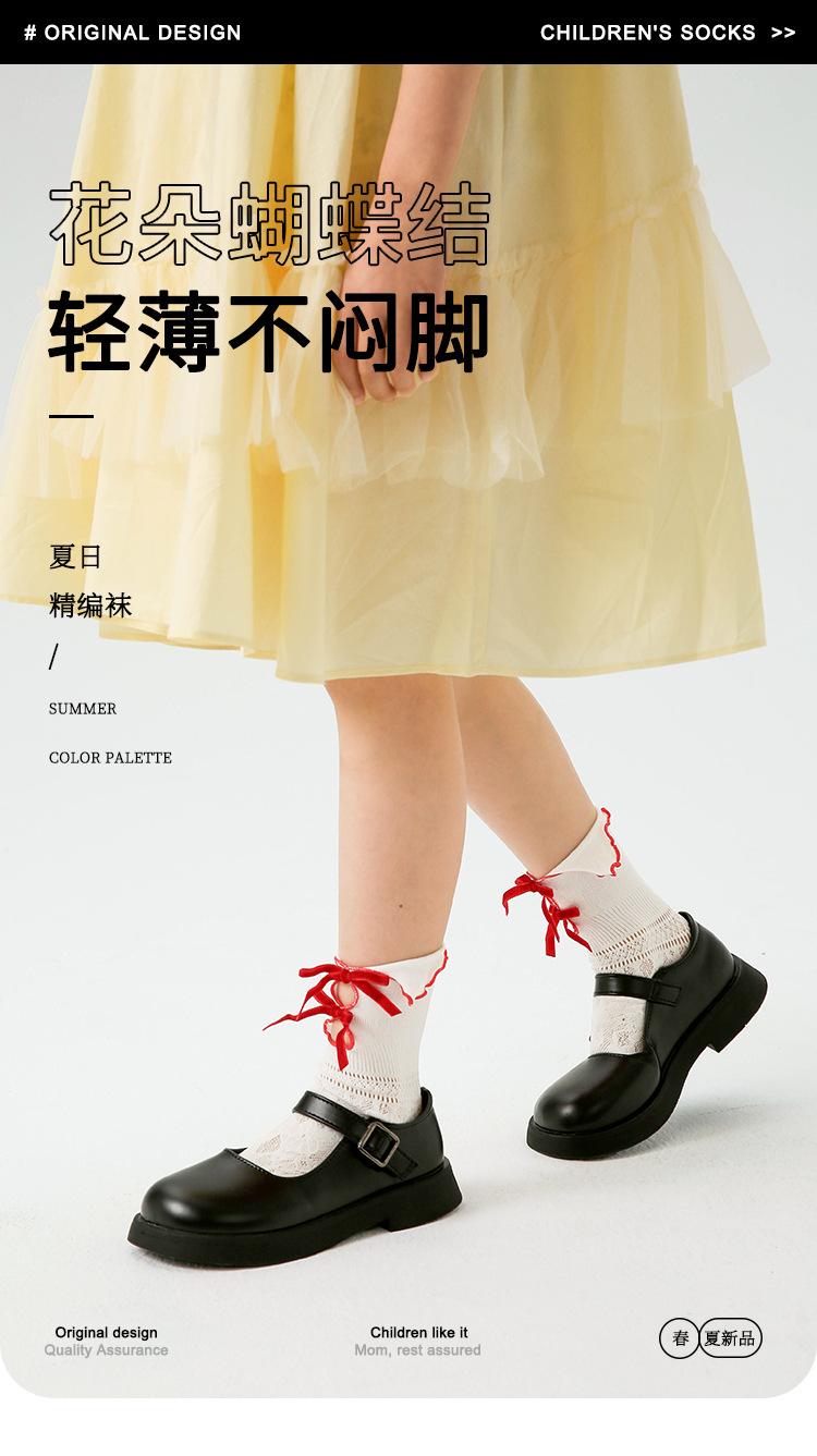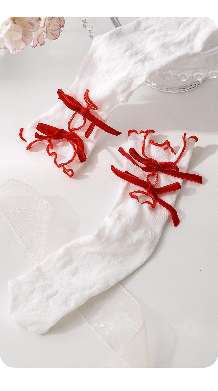 Meias infantis de verão Malha respirável fina Tecido fino meias de tubo médio para crianças Red Bow Meias doces para meninas