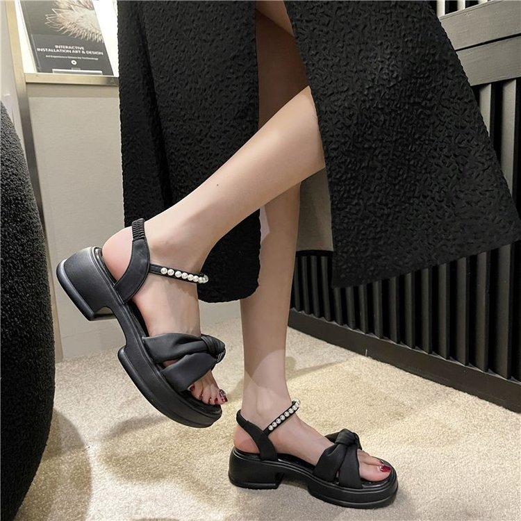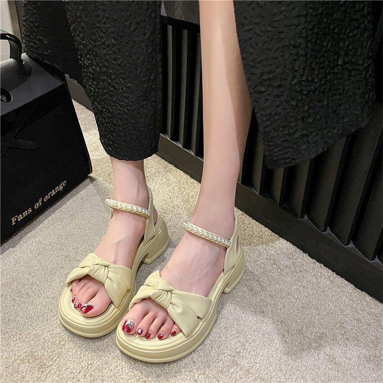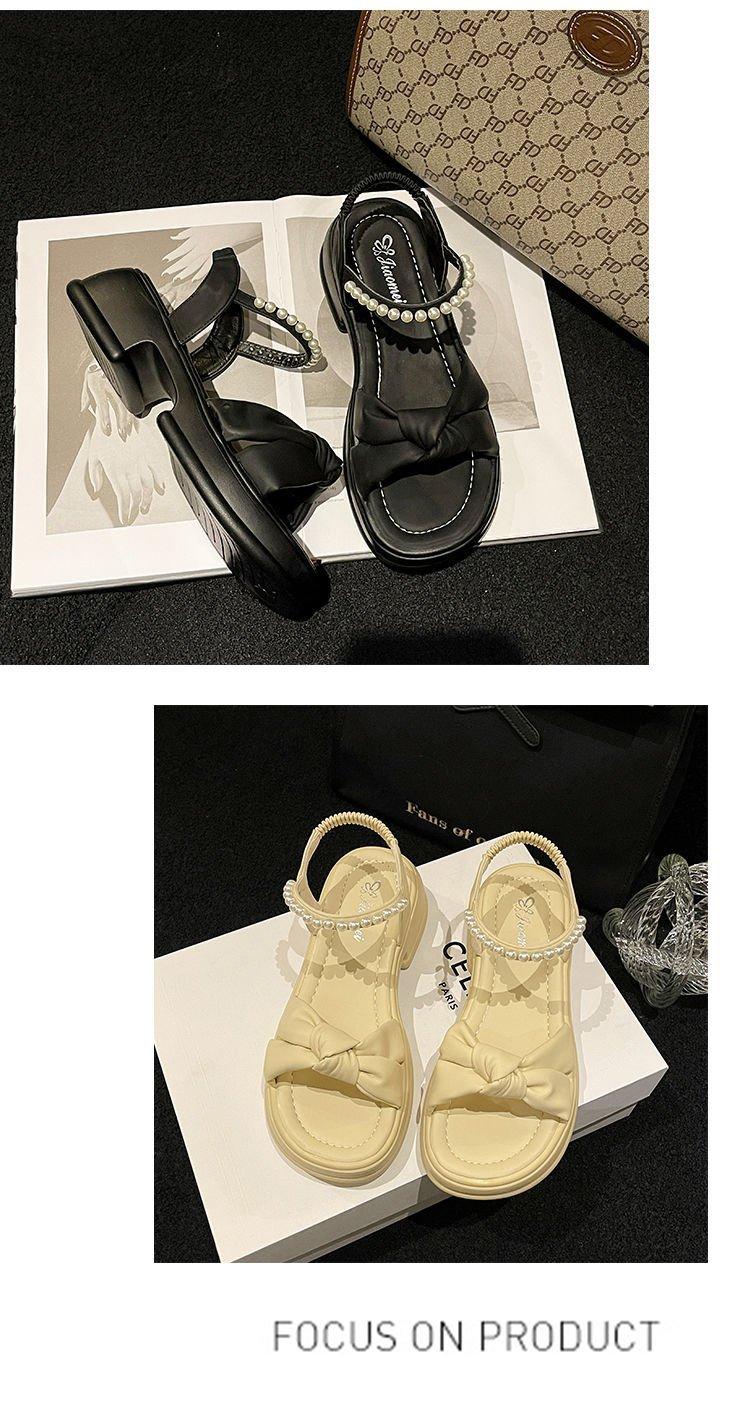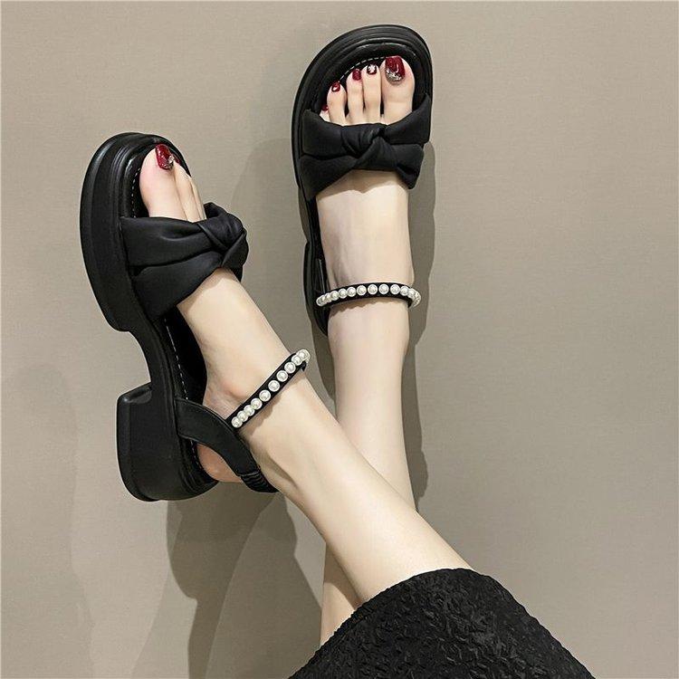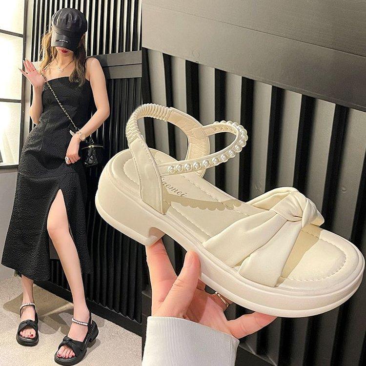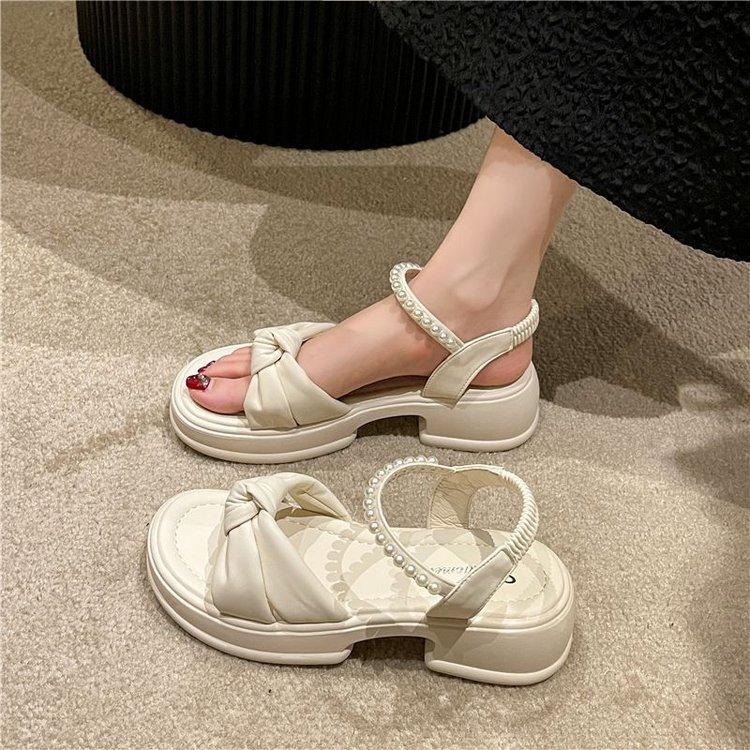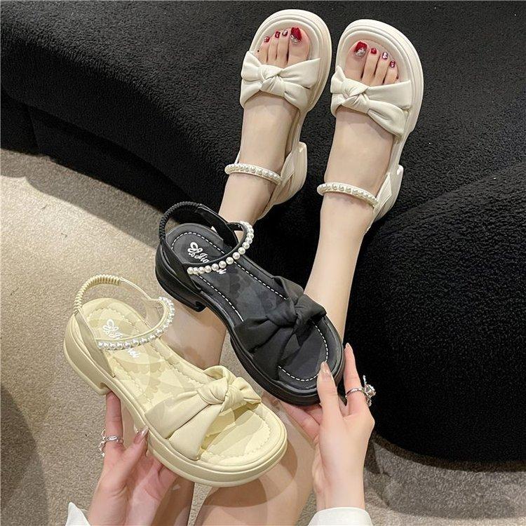 Sandálias Quentes Femininas 2024 Verão Nova Sola Grossa Estilo Fada Pearl Beach Shoes Sola Macia Moda Sapatos Romanos Moda Moda