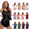 Amazon, pijama feminino estampado de verão, seda gelada, cetim, conjunto de duas peças, shorts, roupas sensuais para casa, 3230