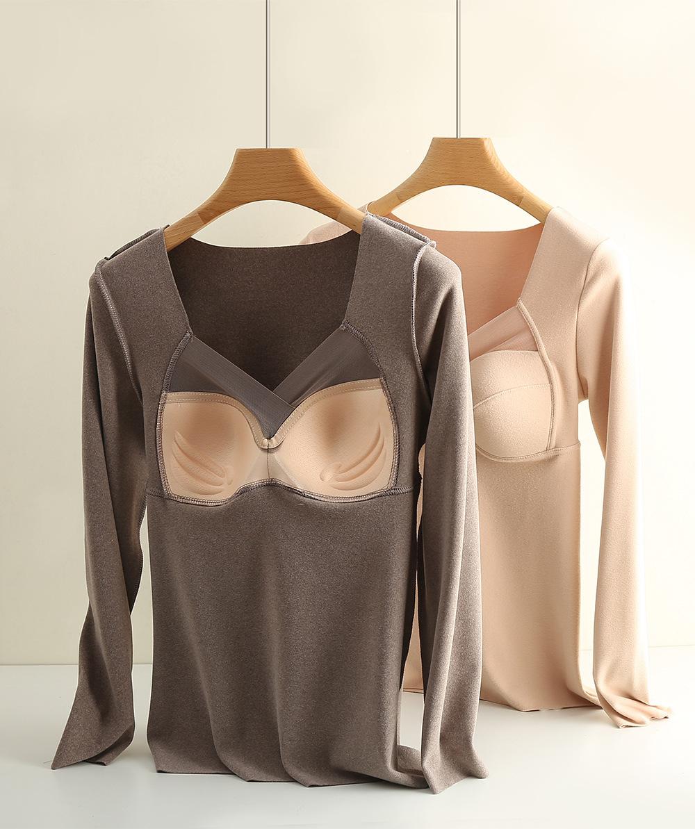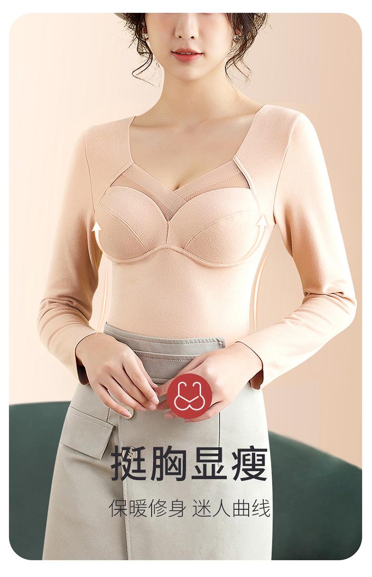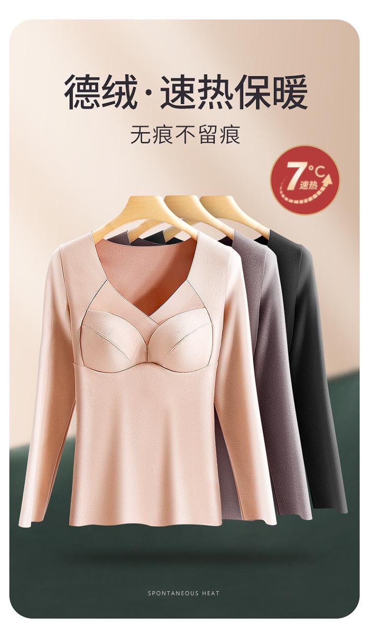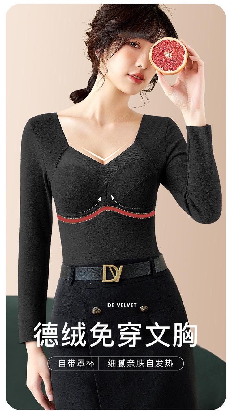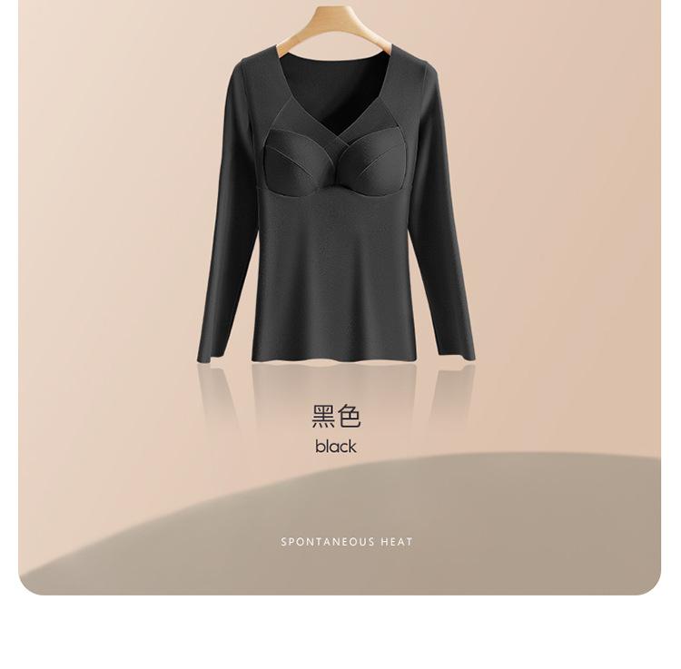 Com almofada no peito De veludo quente engrossado top com decote em V roupa íntima sem sutiã para mulheres outono e inverno camisa de base térmica sem costura para mulheres